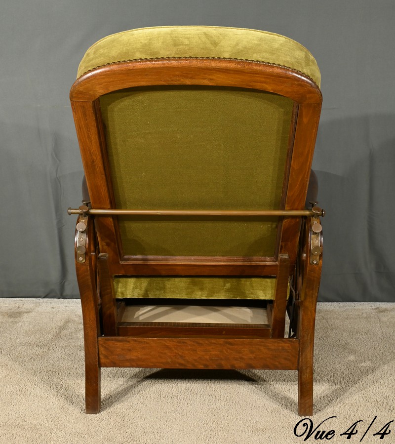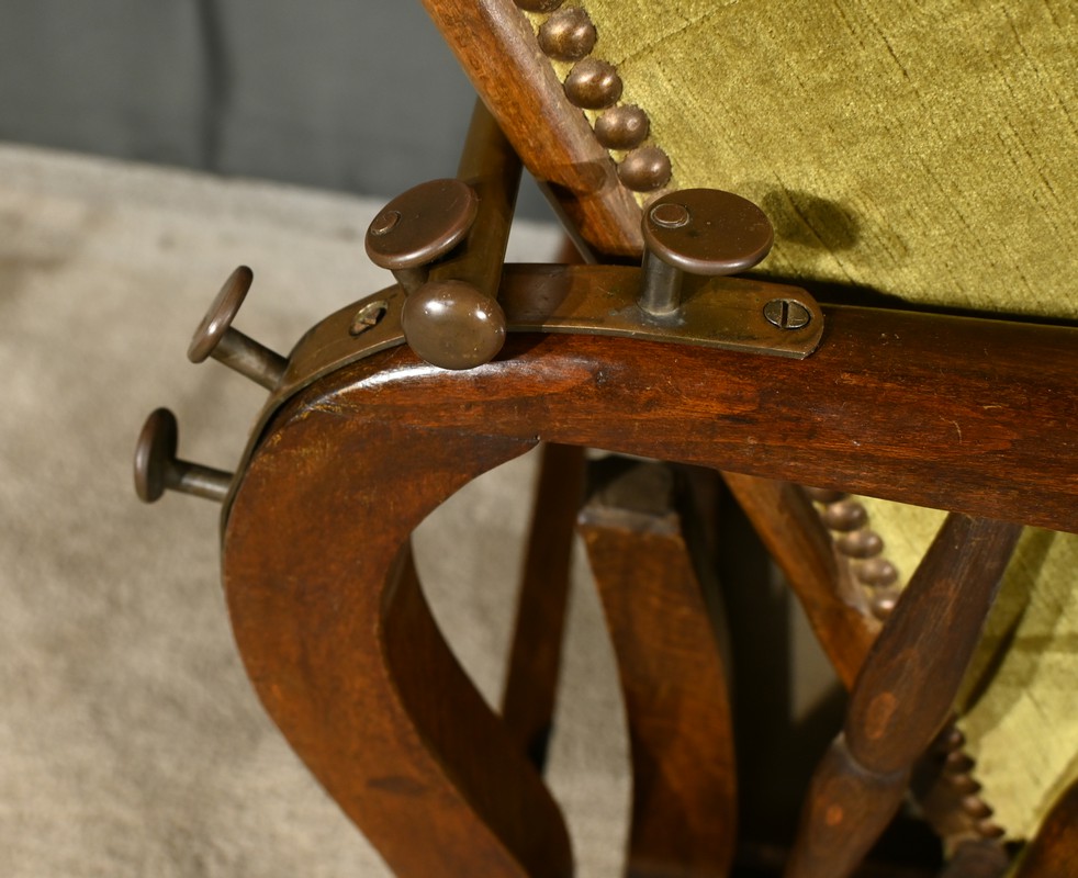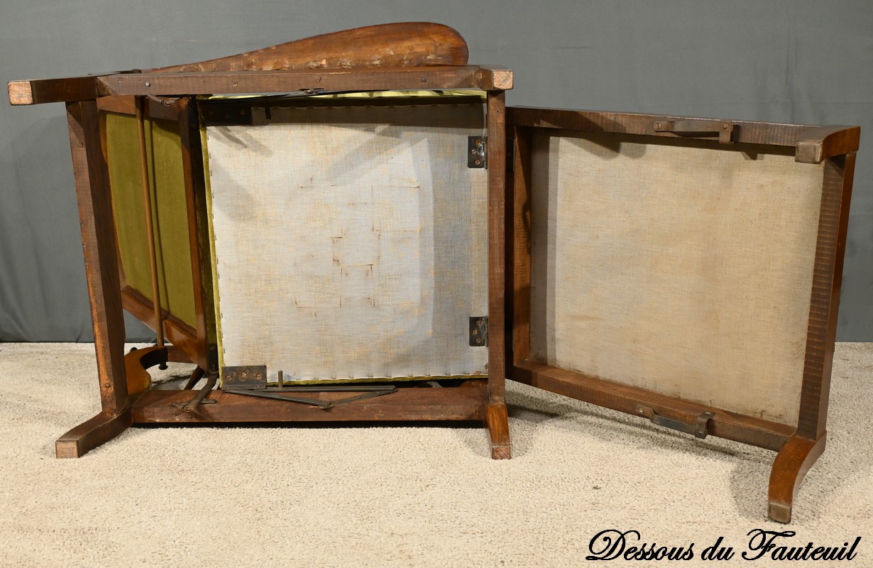 Le dossier du fauteuil est inclinable en quatre positions grâce à un système à crémaillère ingénieux.