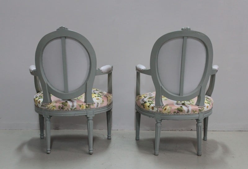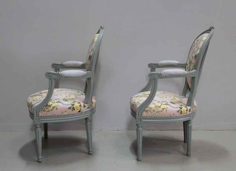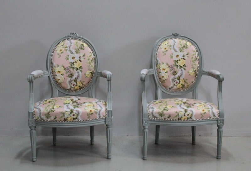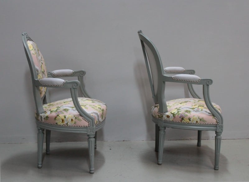 Fausse paire de fauteuils Cabriolet style Louis XVI, ayant beaucoup de similitudes.