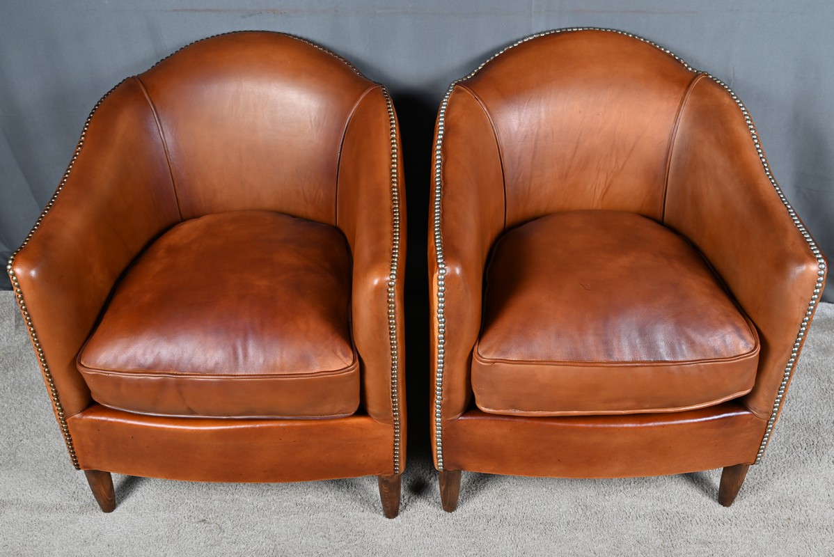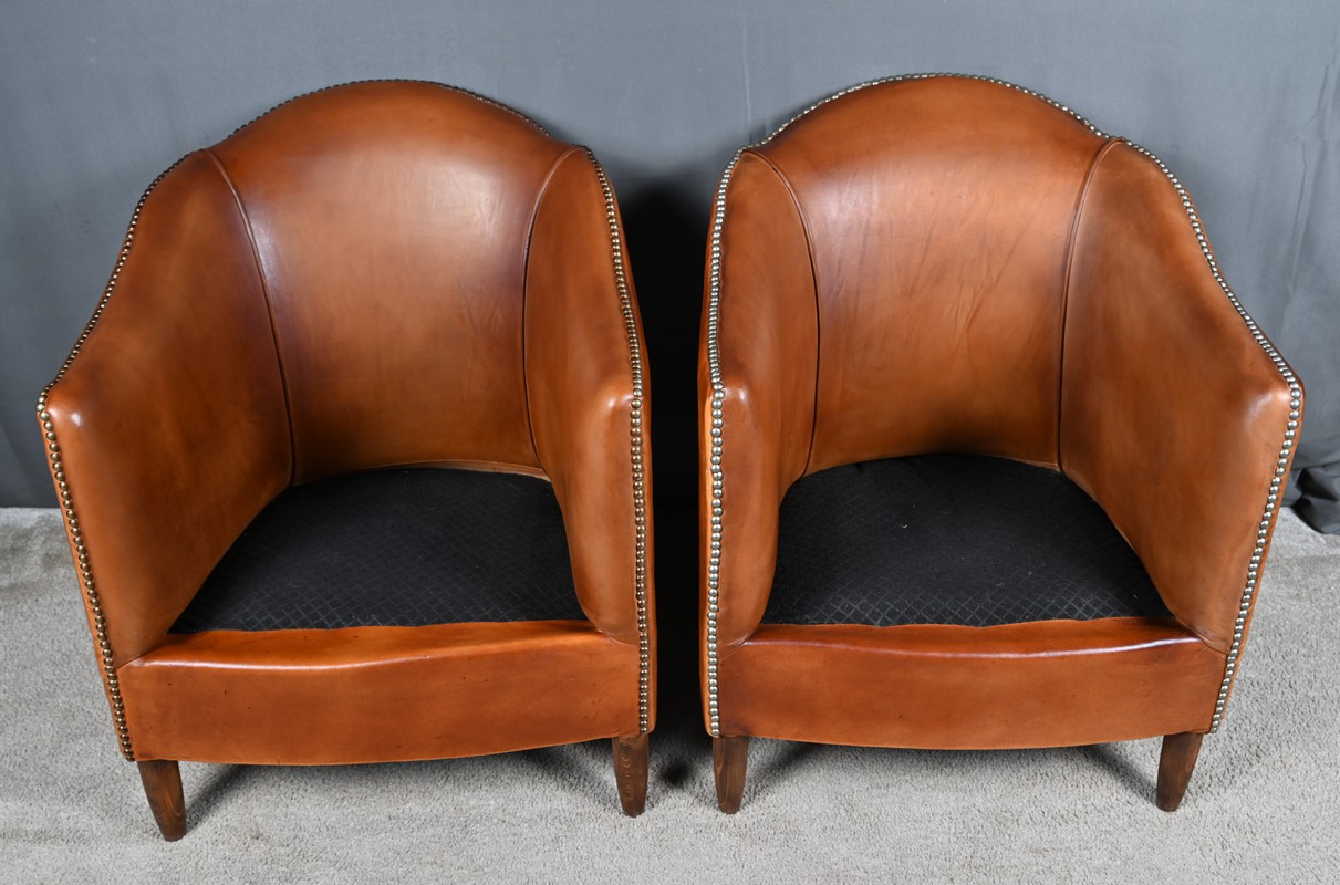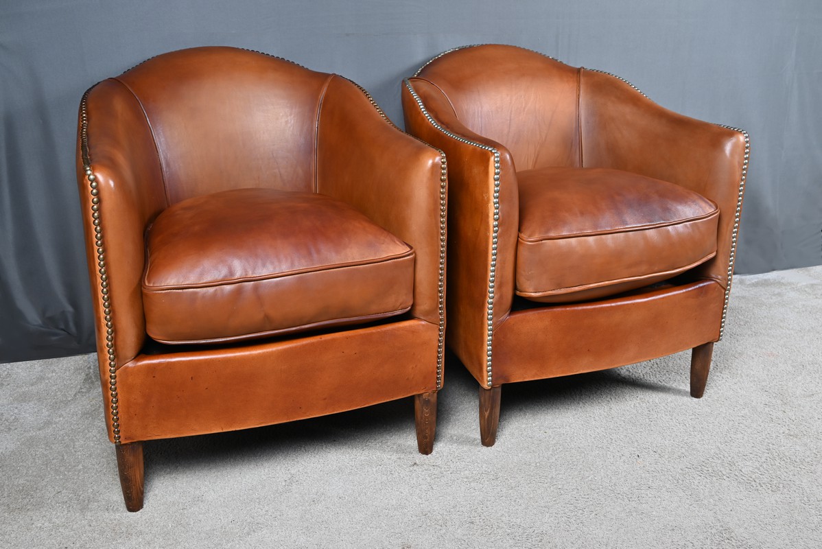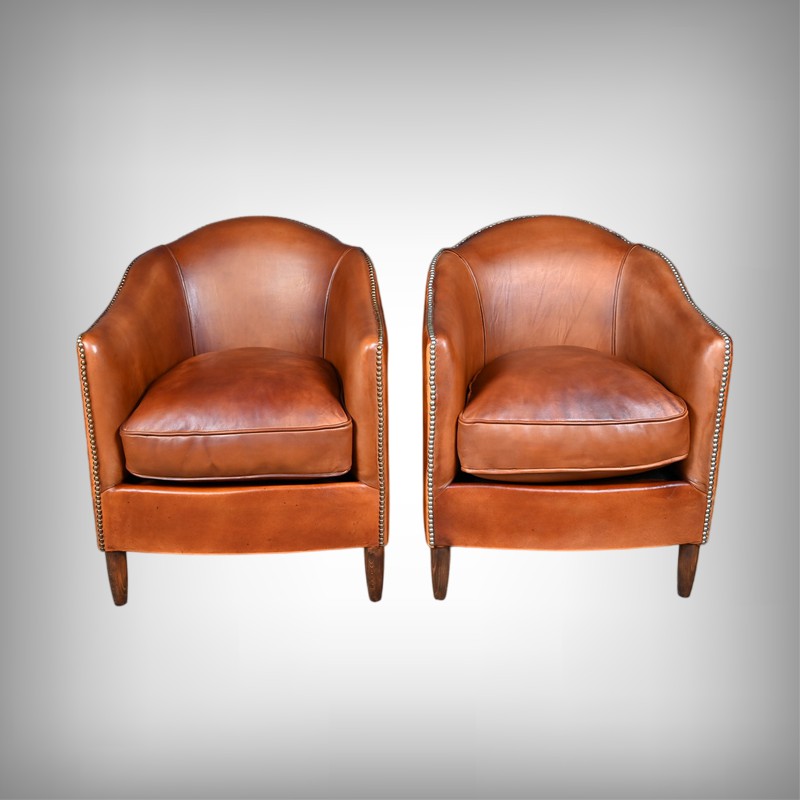 Paire de fauteuils confortables et de caractère, offrant un design tout en rondeur, qui contribue à perpétuer sa célébrité légendaire.