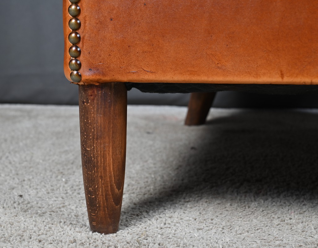 Les dossiers et les assises sont à ressorts biconiques sur sangles et toile de jute, crin végétal et ouate de coton.