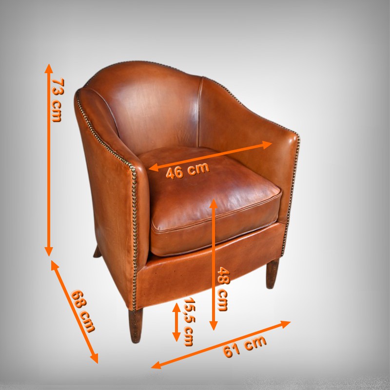 Fauteuil : Largeur : 61 cm – Profondeur : 68 cm – Hauteur : 73 cm