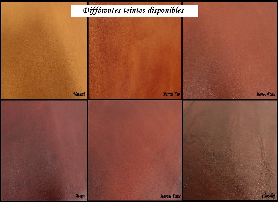 Paroxysme de l’Adaptabilité, ils sont déclinables en plusieurs dégradés de Cuirs Marron (voir photos) : Chocolat, Acajou, Havane, Marron Foncé et Marron Clair.