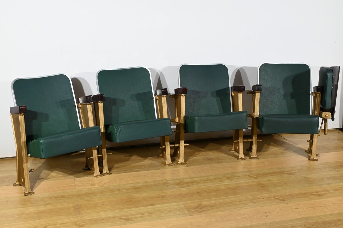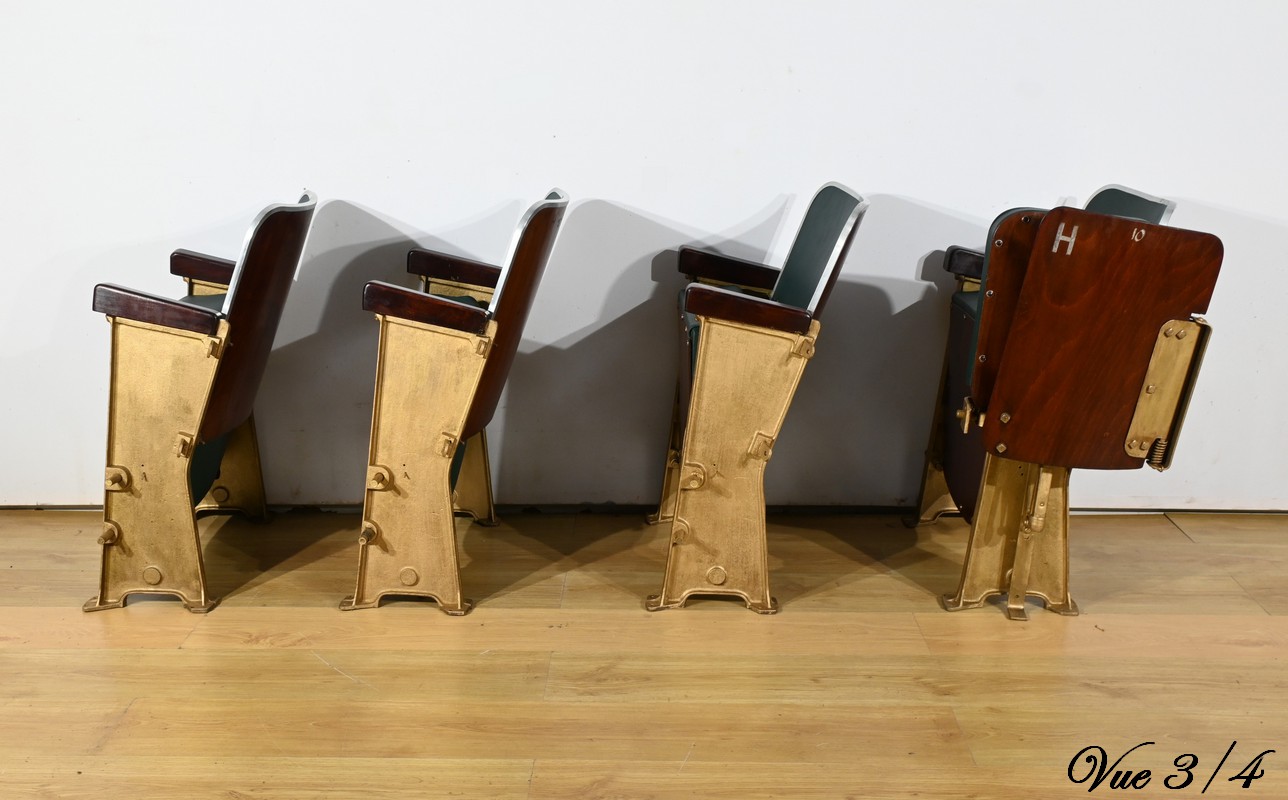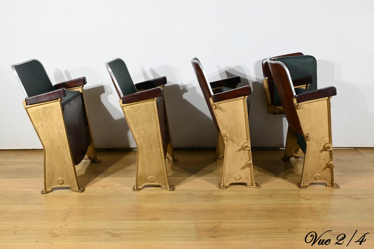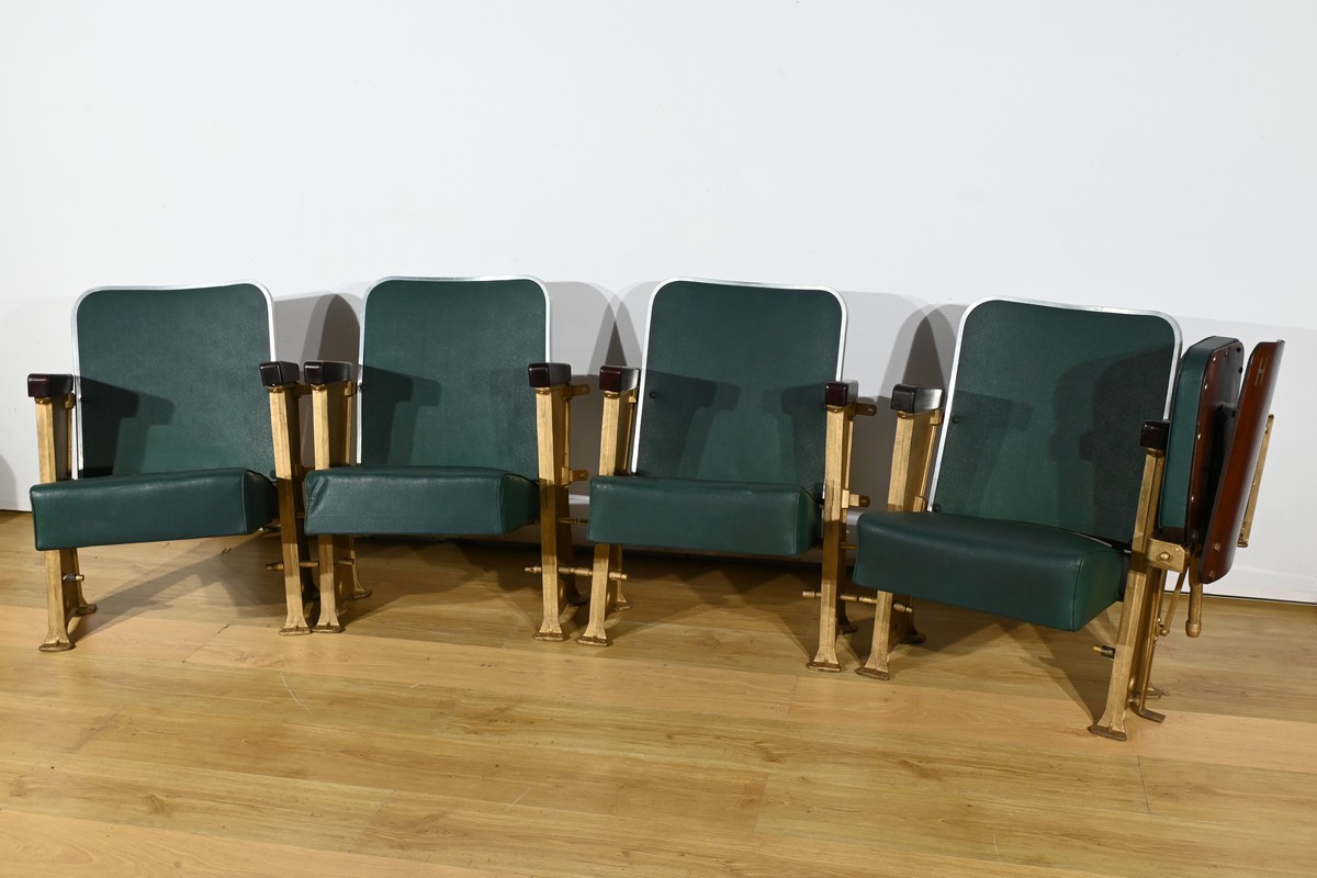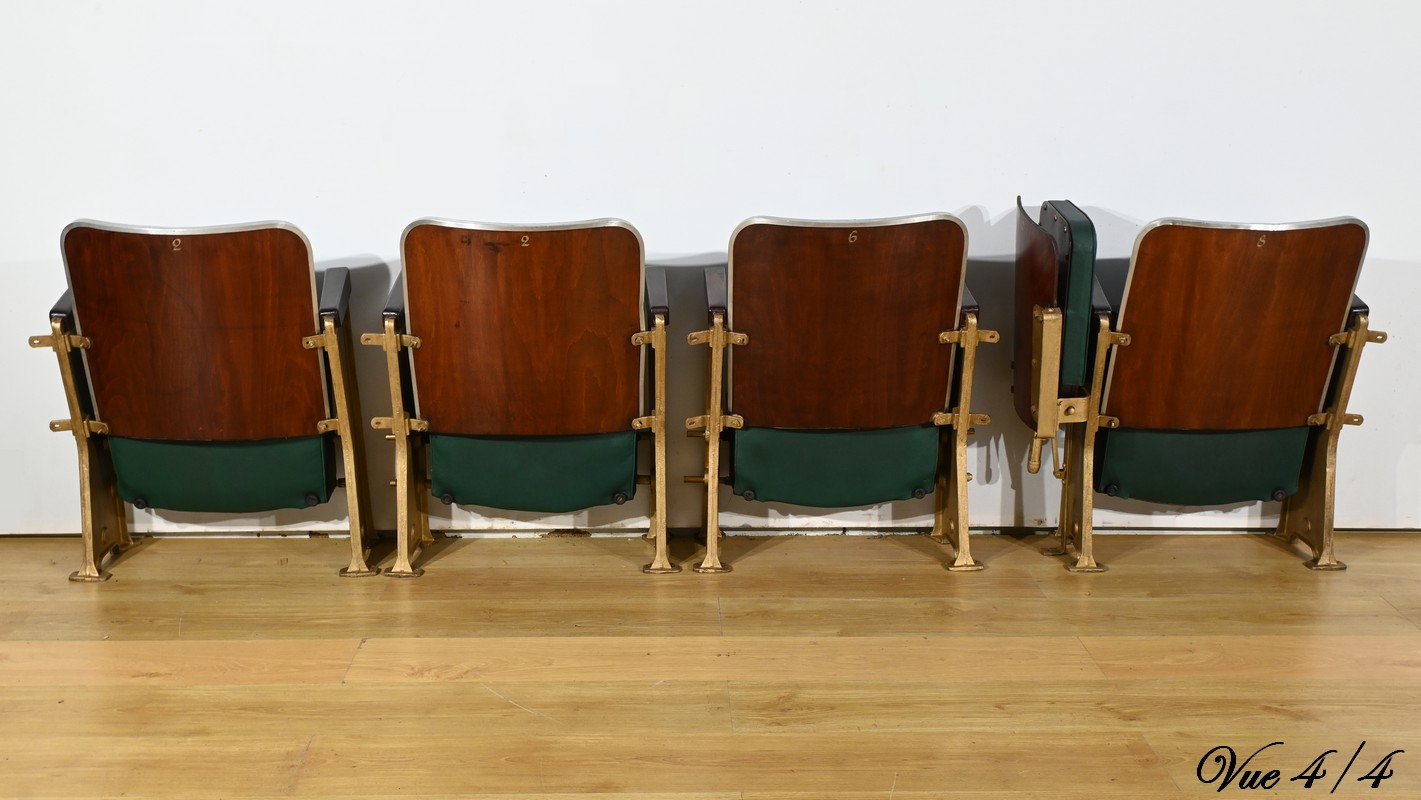 Cette suite de quatre fauteuils de cinéma, datant des années 1950, est un véritable trésor pour les amateurs de mobilier vintage.