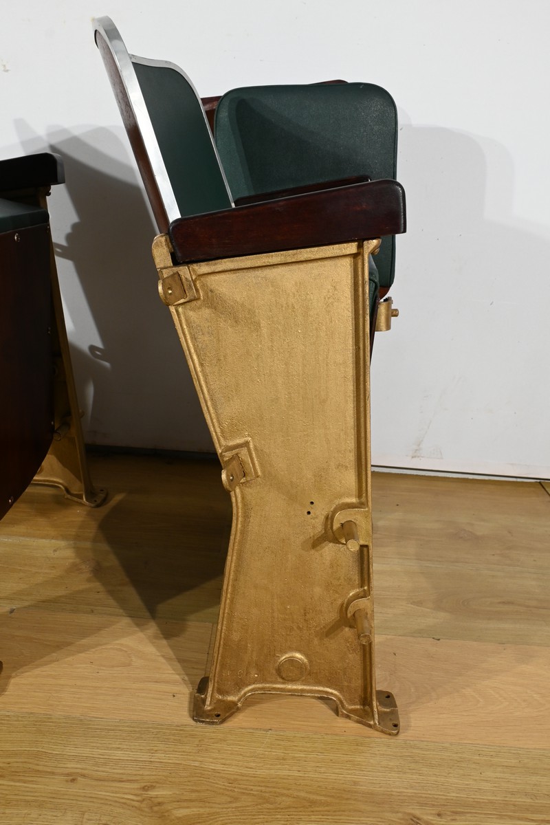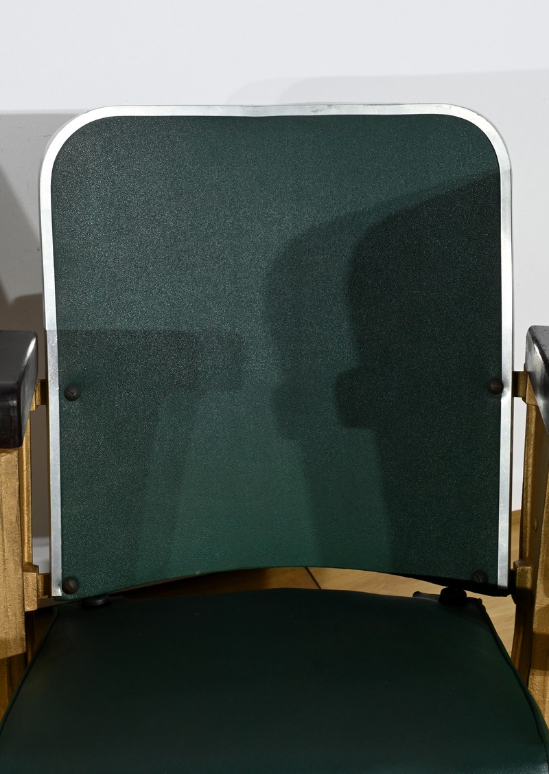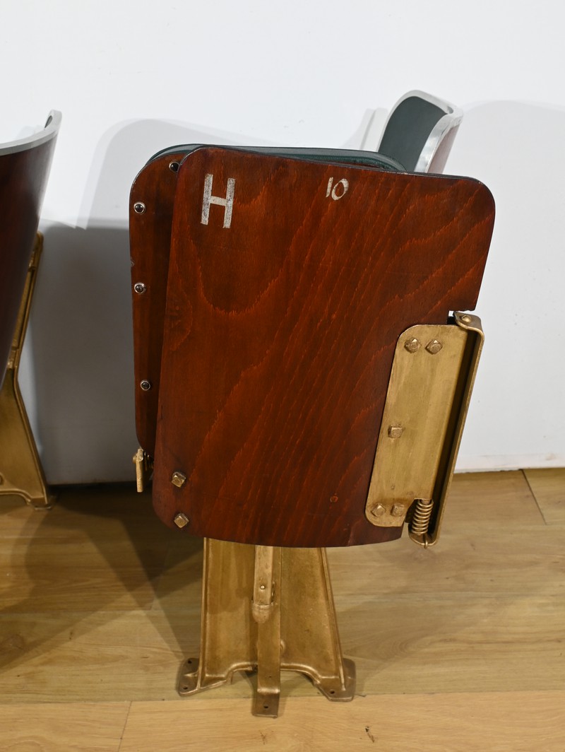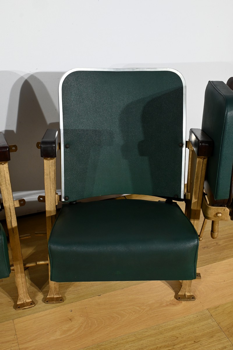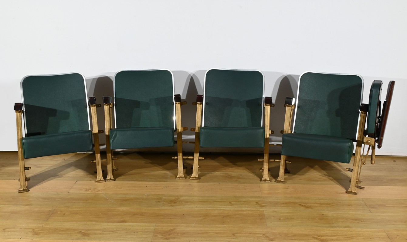 Cette suite de quatre fauteuils de cinéma, datant des années 1950, est un véritable trésor pour les amateurs de mobilier vintage.