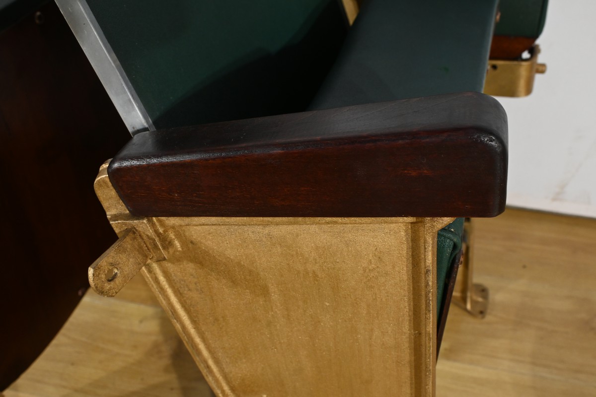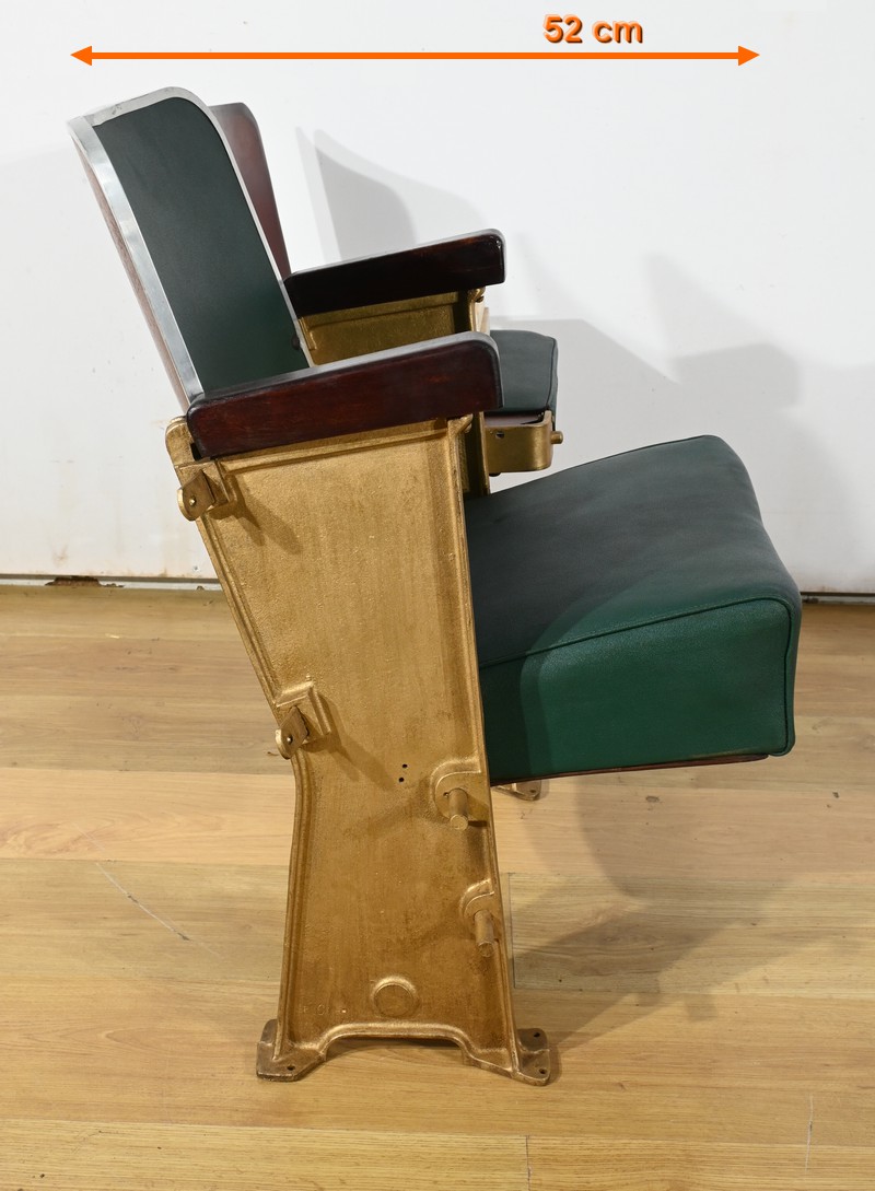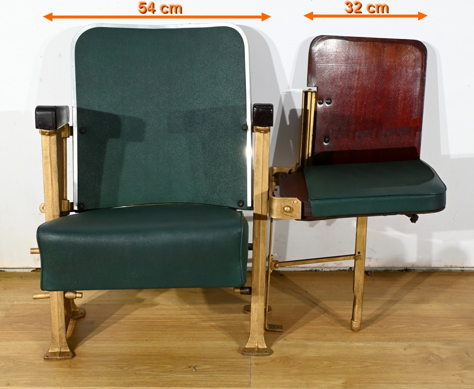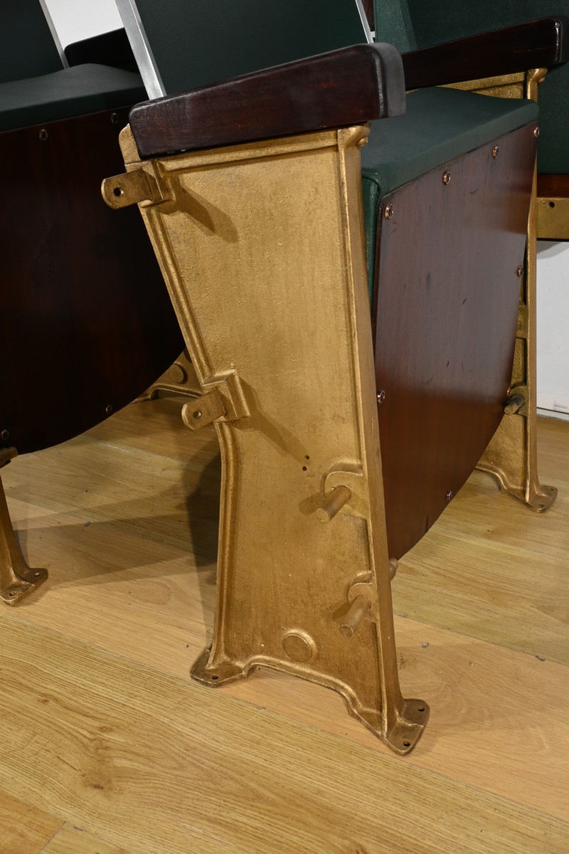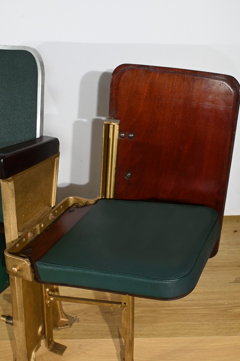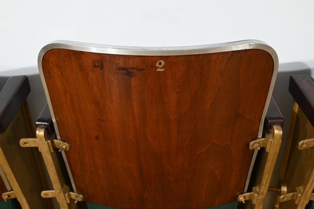 Cette suite de quatre fauteuils de cinéma, datant des années 1950, est un véritable trésor pour les amateurs de mobilier vintage.