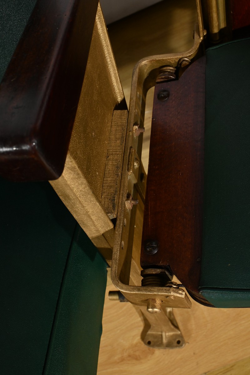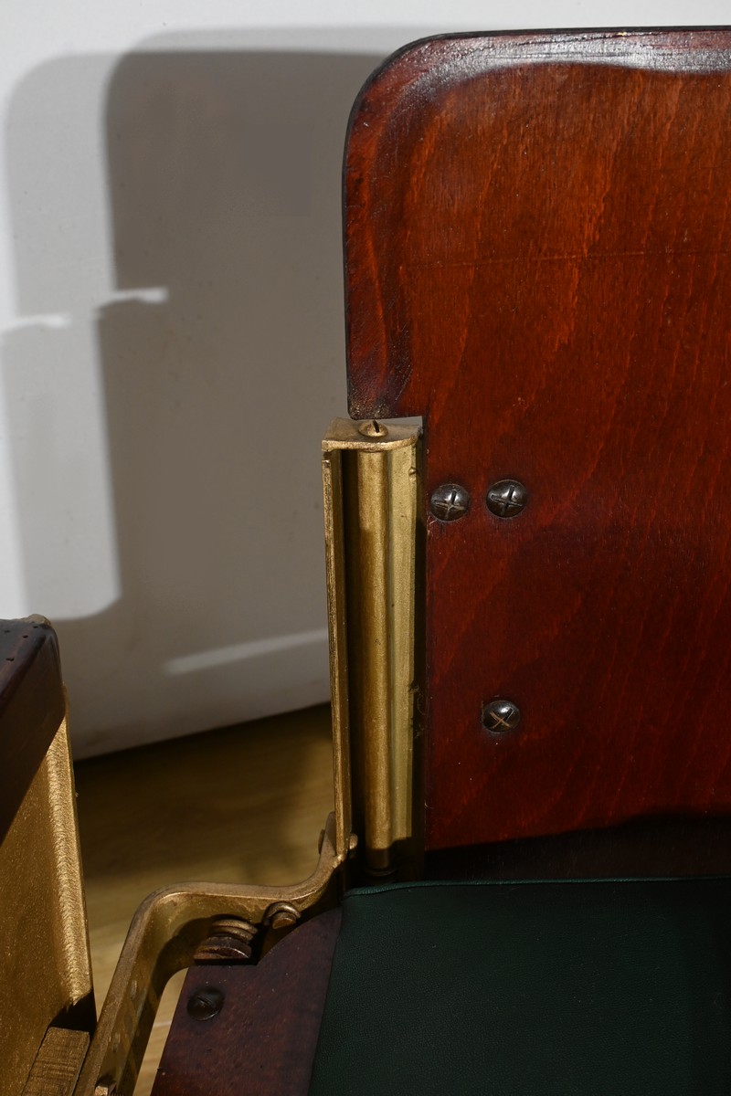 Un des fauteuils est équipé d’un strapontin rabattable avec un dossier en acajou, offrant une flexibilité supplémentaire.