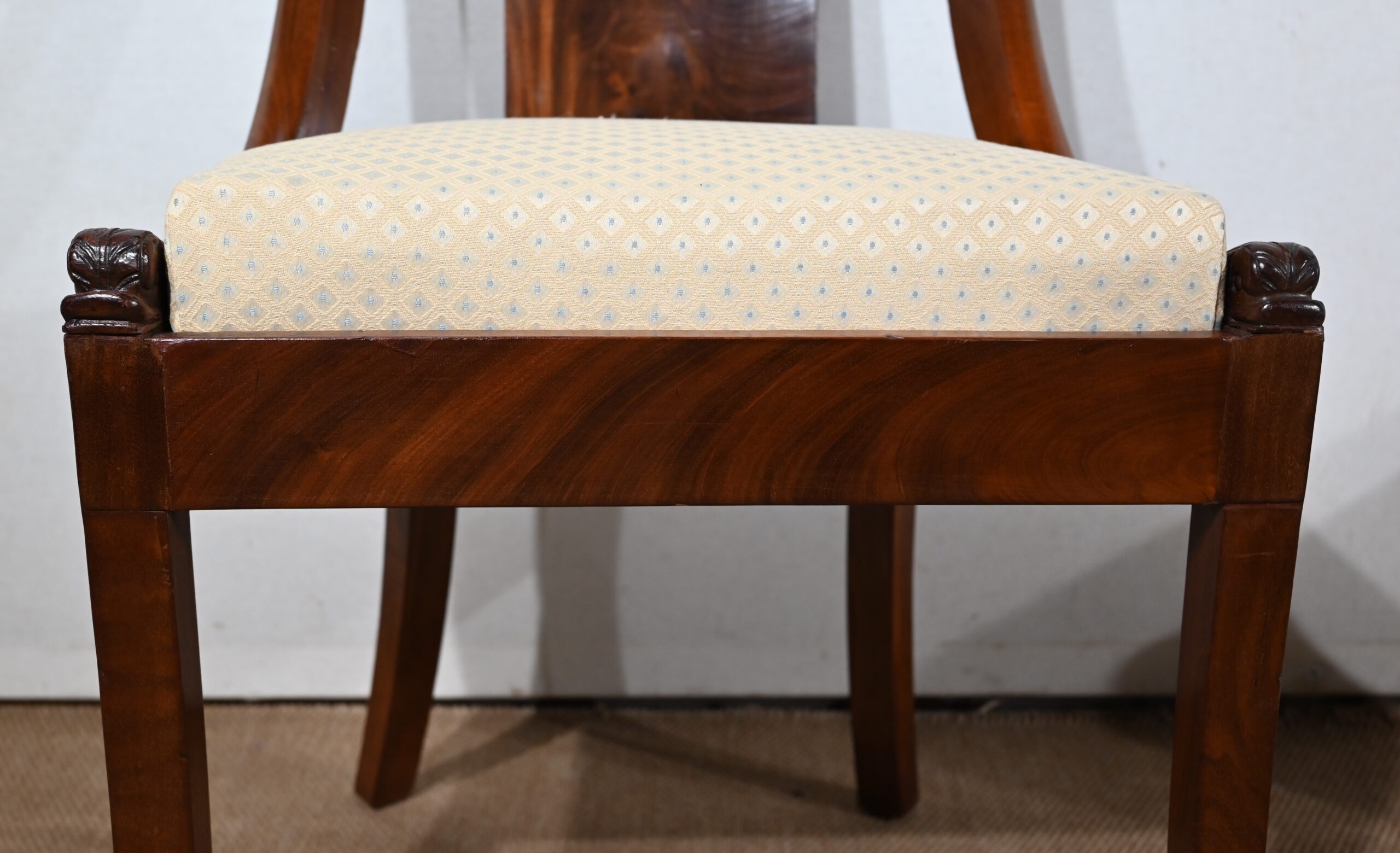 Ces sièges reposent sur quatre pieds sabres.