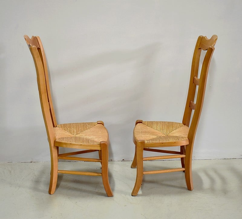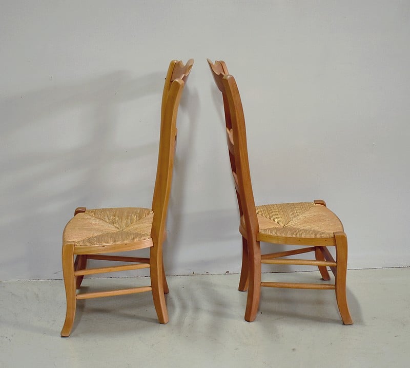 Dossiers à découpes et assise en paillage.