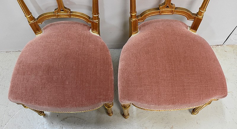 Paire de Chaises en Bois Doré, de style Louis XVI.