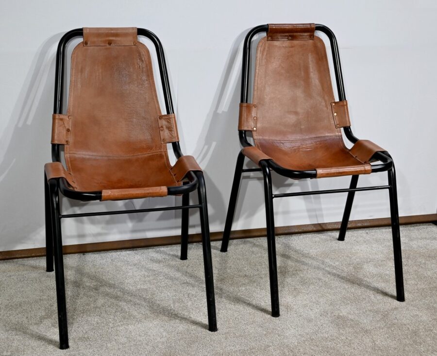 Chaise en Métal et Cuir, par C.Perriand pour les Arcs – 1960