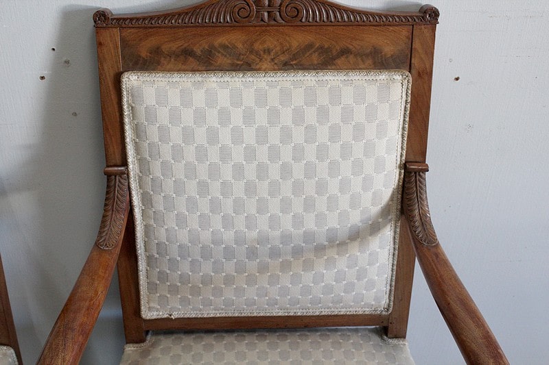 Paire de fauteuils 1er Empire en Acajou massif et placage de Ronce d’Acajou.