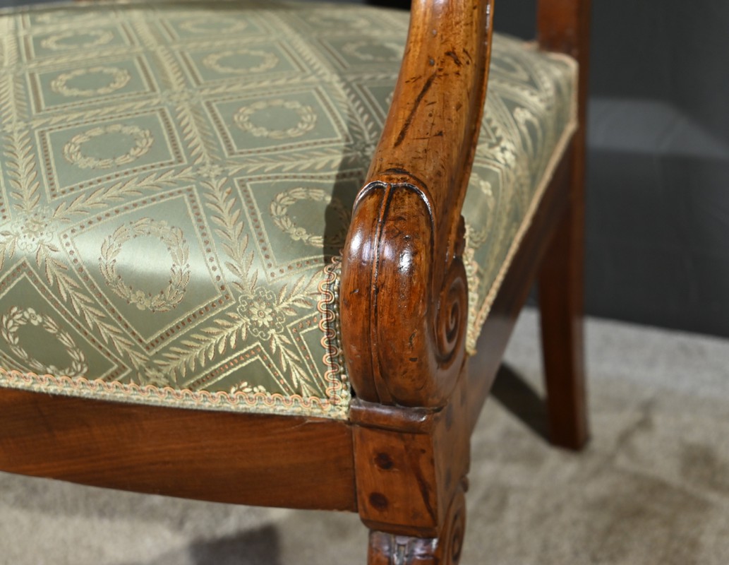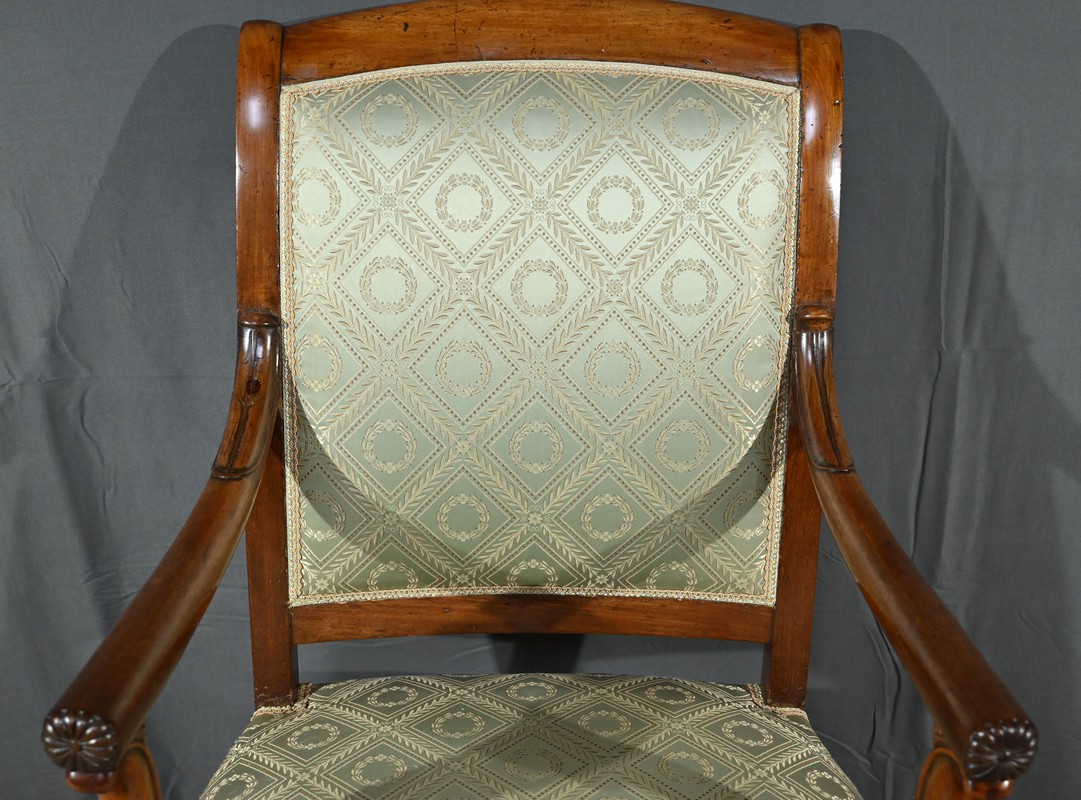 Ces fauteuils d’époque en acajou, se distinguent par des lignes douces et complexes propres au style restauration.