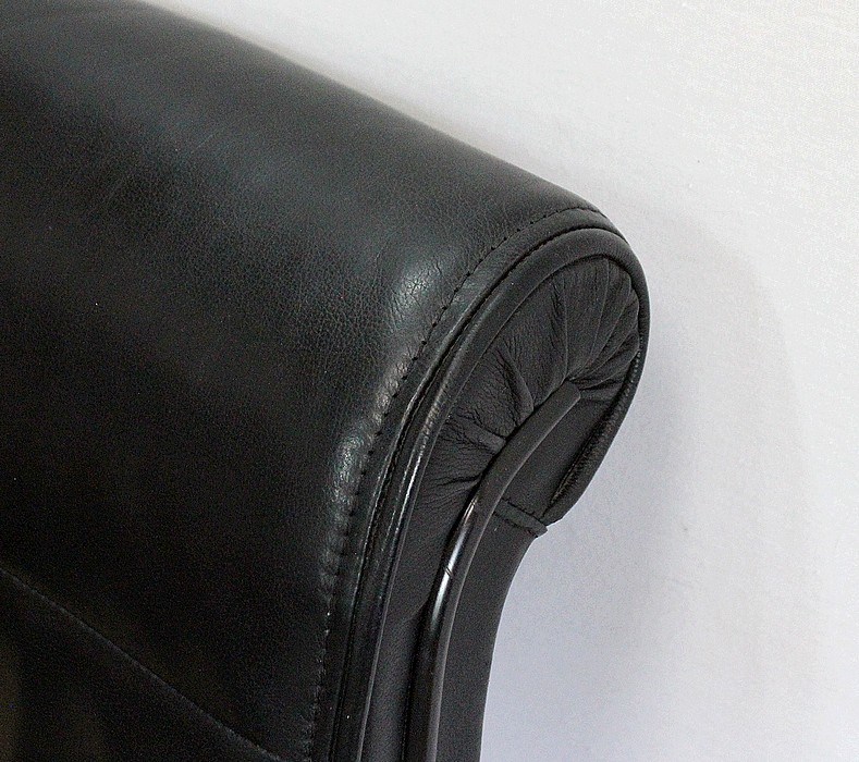 Ces mobiliers reconnus pour leur design intemporel se revêtissent d’un cuir noir à coutures, sur leur dos et leur assise.