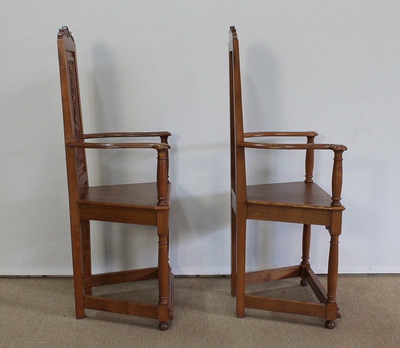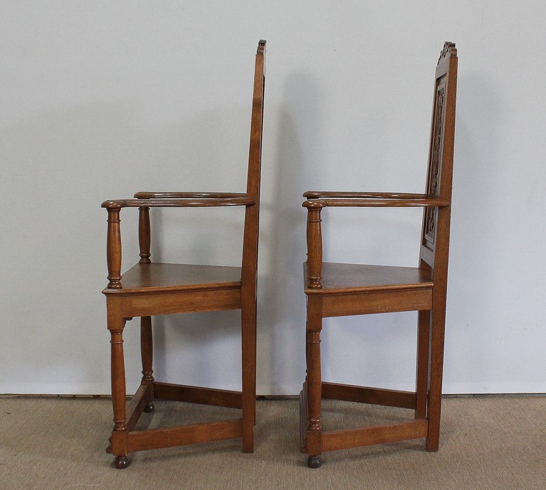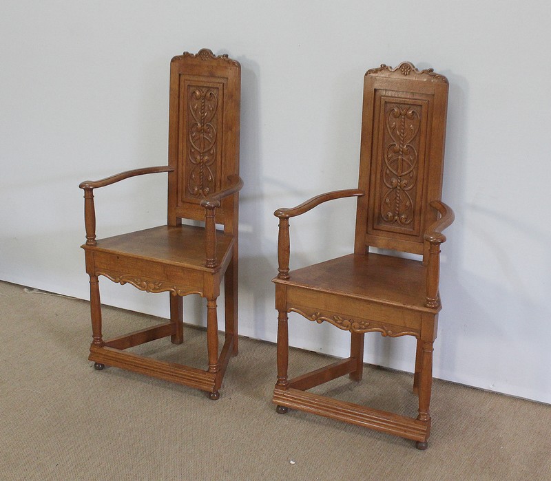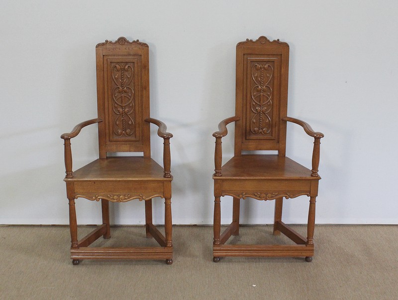Ces fauteuils dits ‘Caquetoires’, premiers Fauteuils équipés d’accotoirs, conçu dans l’esprit Renaissance, feront de très élégantes Assises pour un Bureau par exemple.