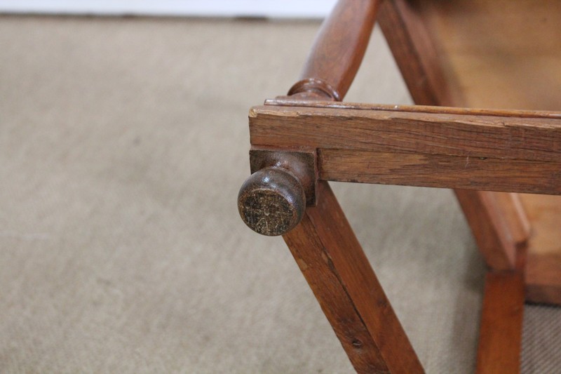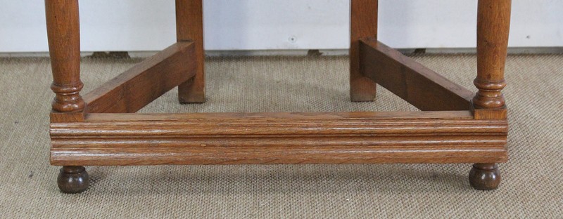 Les pieds Balustres sont Tournés pour ceux de l’avant, et Carrés à l’arrière. Ils sont reliés entre eux par trois Traverses dont celle à l’avant est Moulurée, tout comme la Ceinture juste au-dessus qui présente en plus des Volutes.