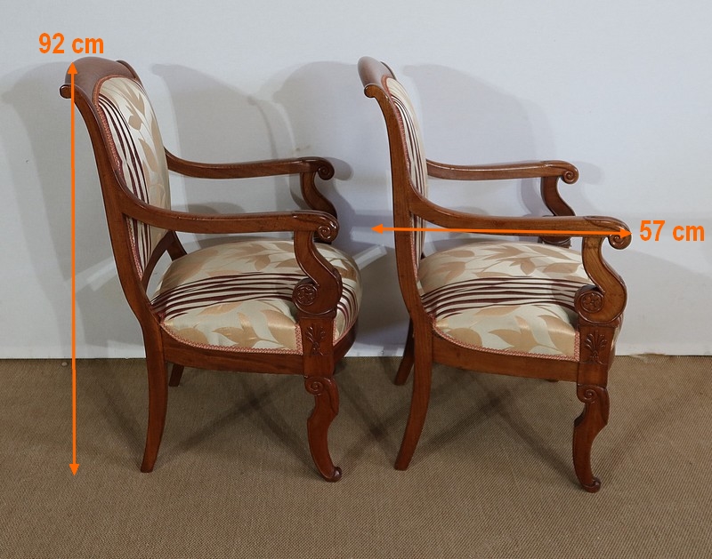 Élégants fauteuils en Acajou de Cuba massif de petites dimensions reposant sur des pieds avant à jarret et des pieds arrière sabre.