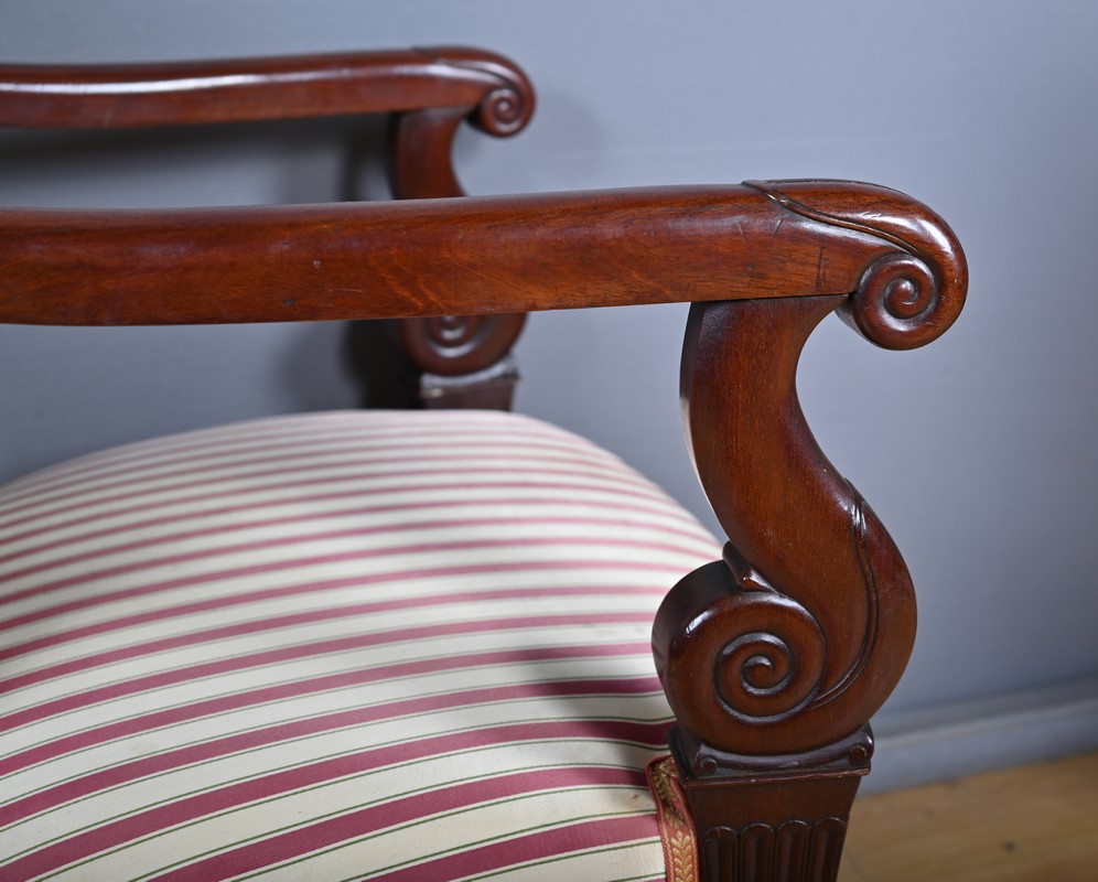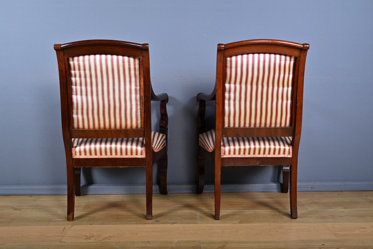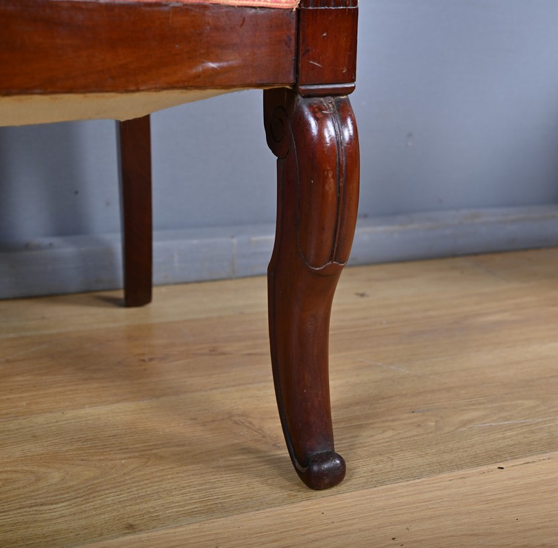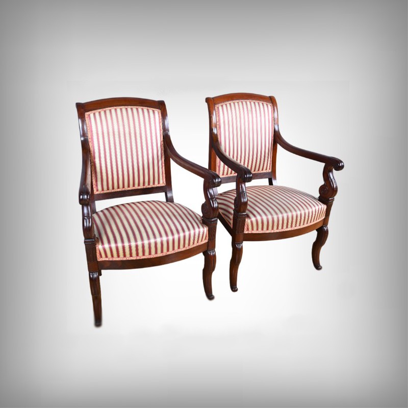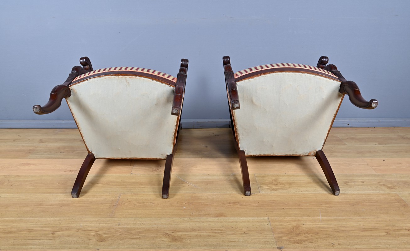 Élégants fauteuils en acajou de Cuba massif reposant sur des pieds avant à jarret et des pieds arrière sabre.