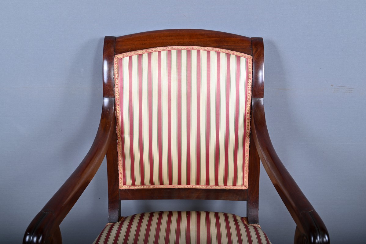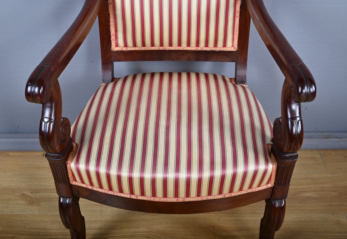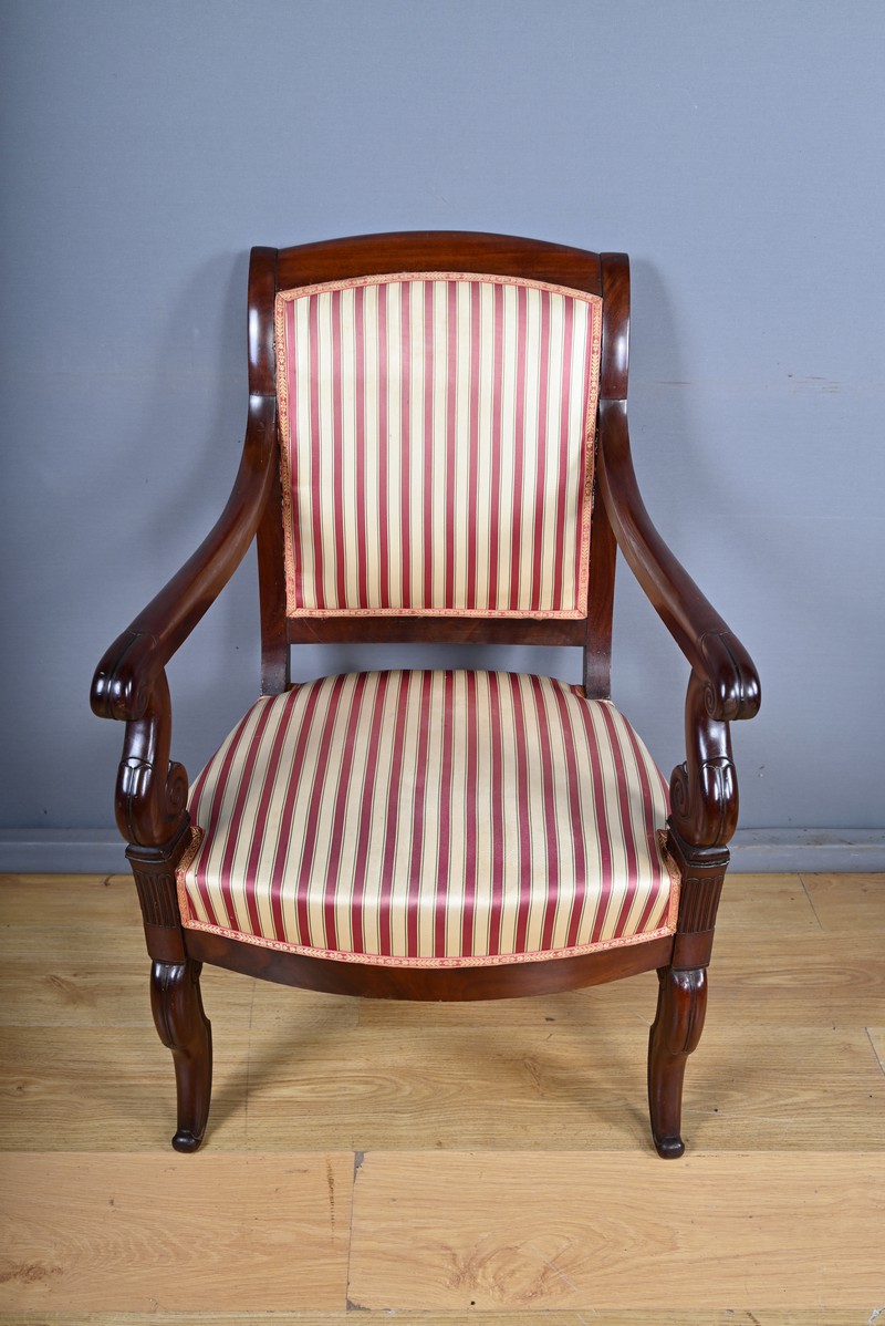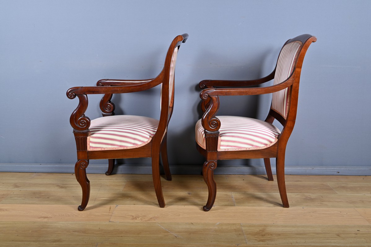 Élégants fauteuils en acajou de Cuba massif reposant sur des pieds avant à jarret et des pieds arrière sabre.