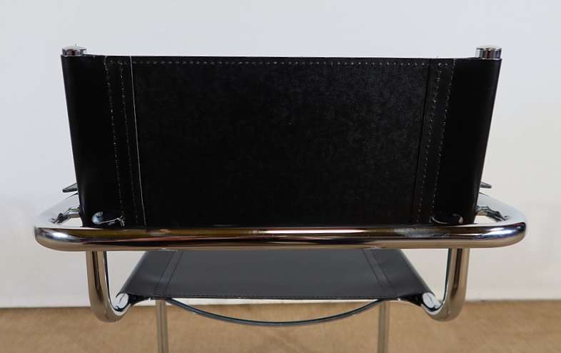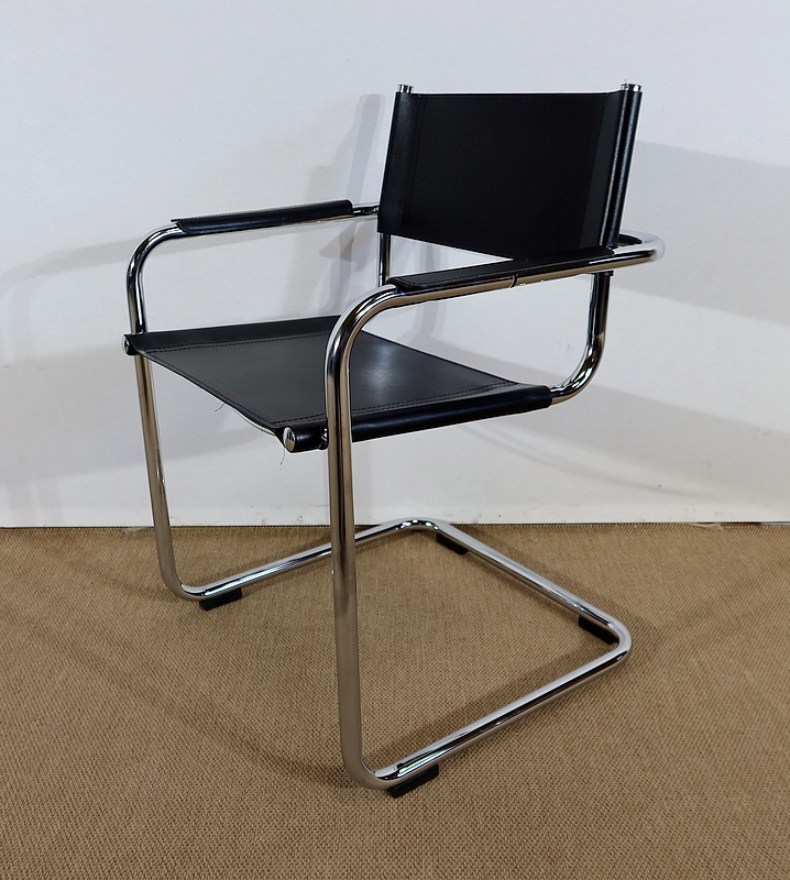 Paire de fauteuils en cuir noir et métal chromé reprenant le modèle B34 de Marcel Breuer édité dans les années 1930.