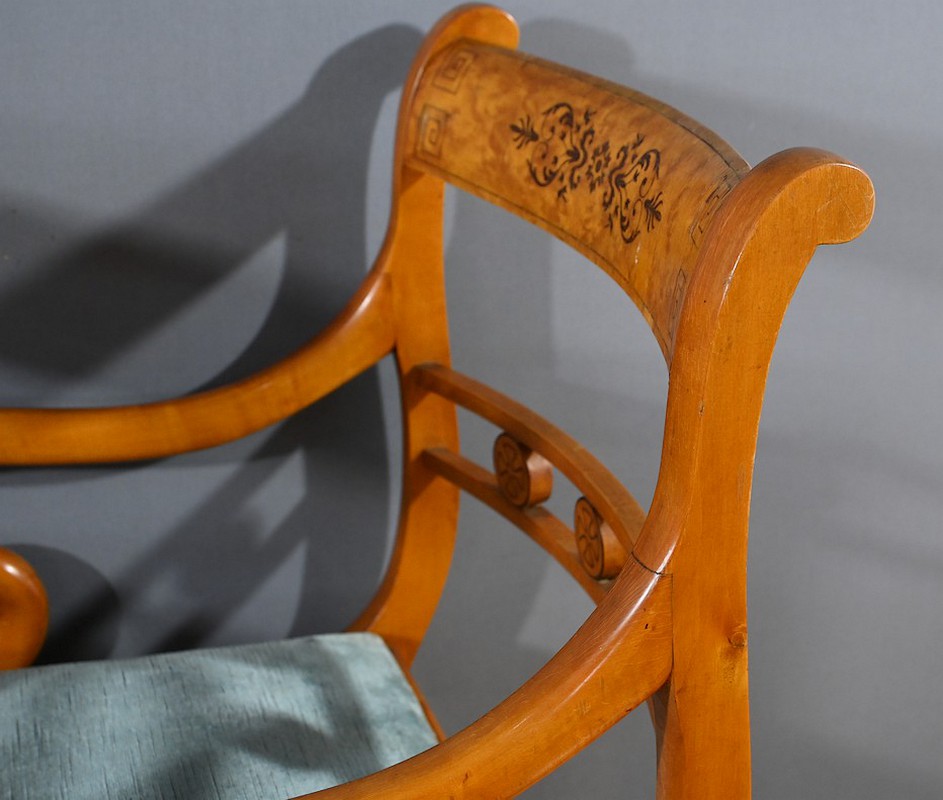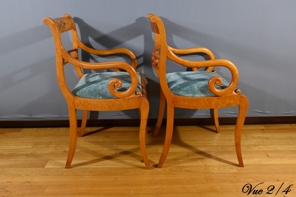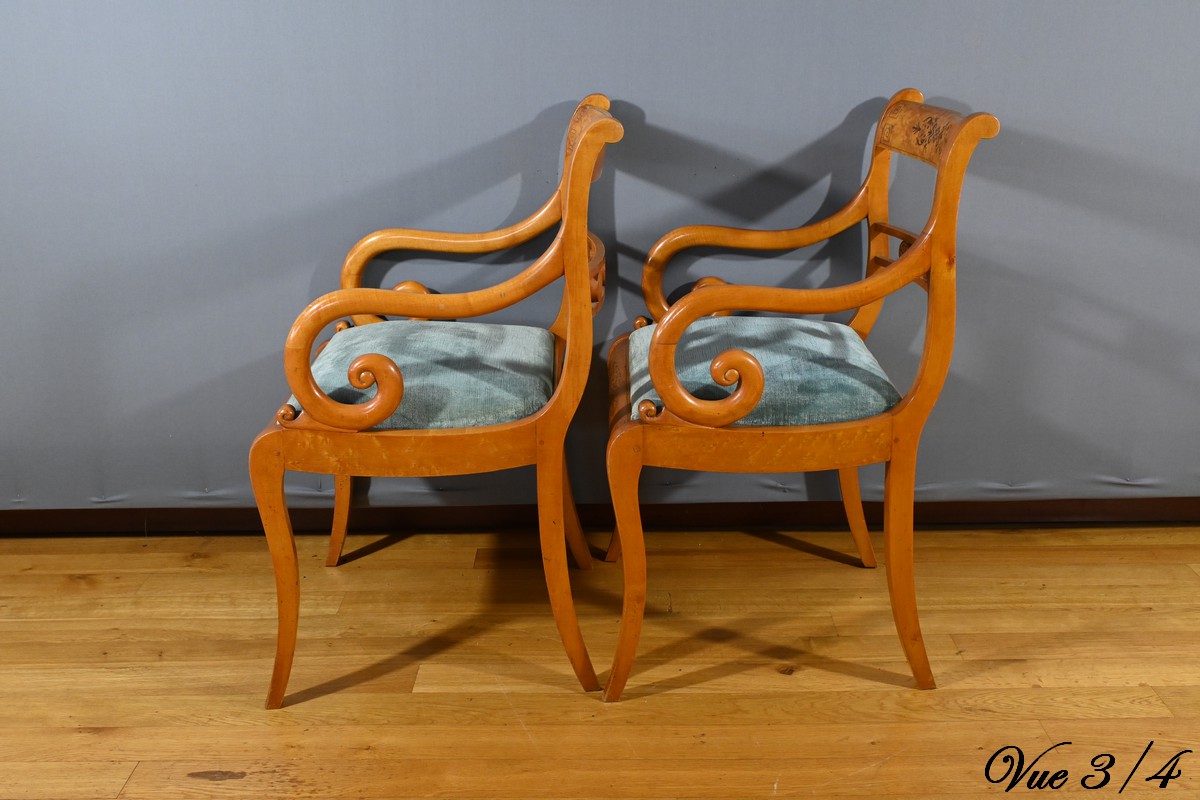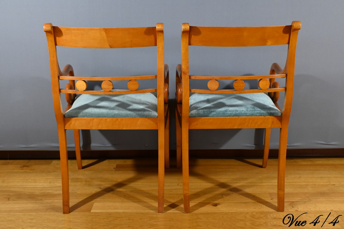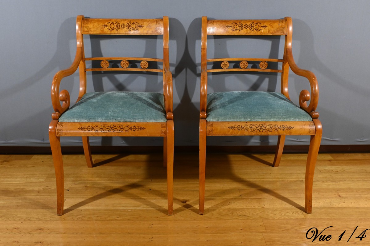 Paire de Fauteuils en Érable Moucheté, style Charles X – Milieu XXe