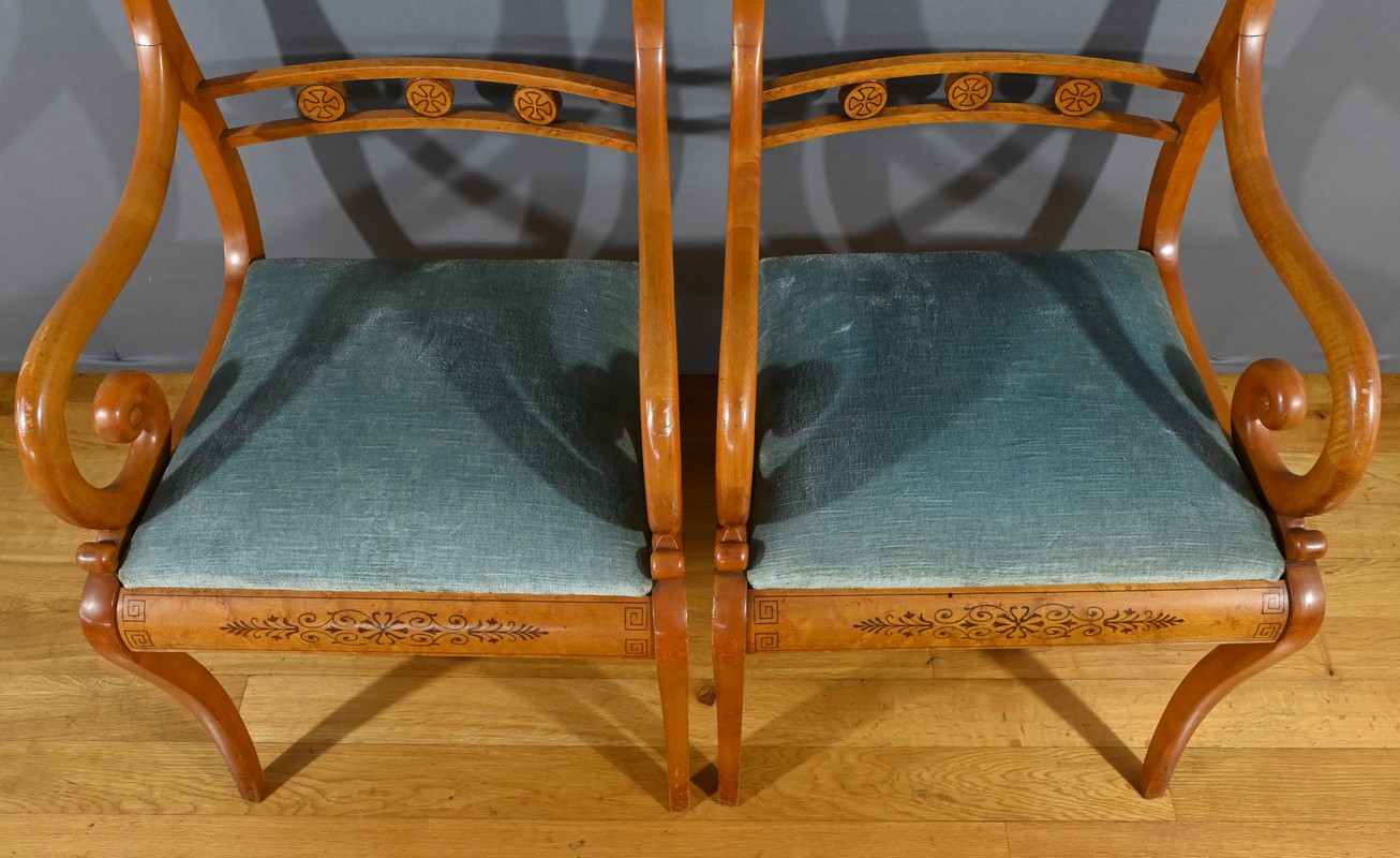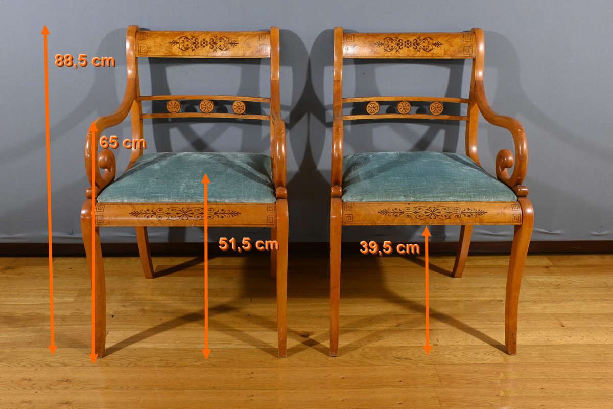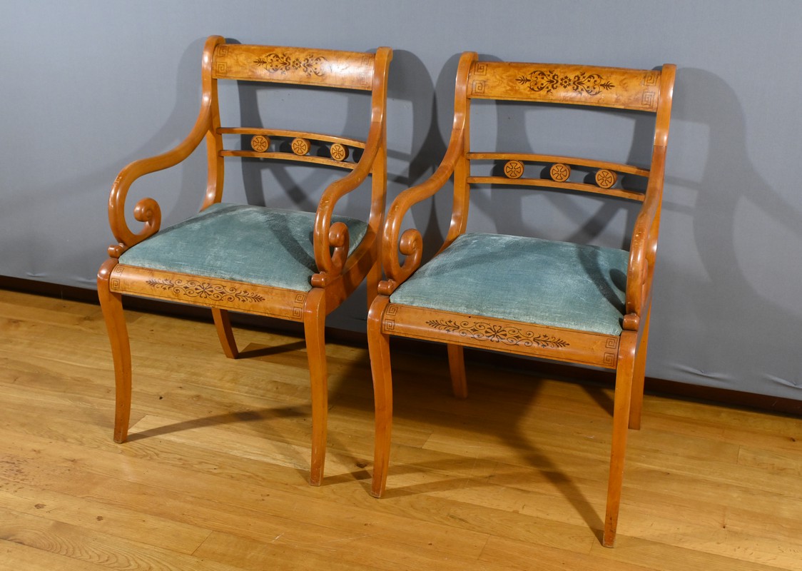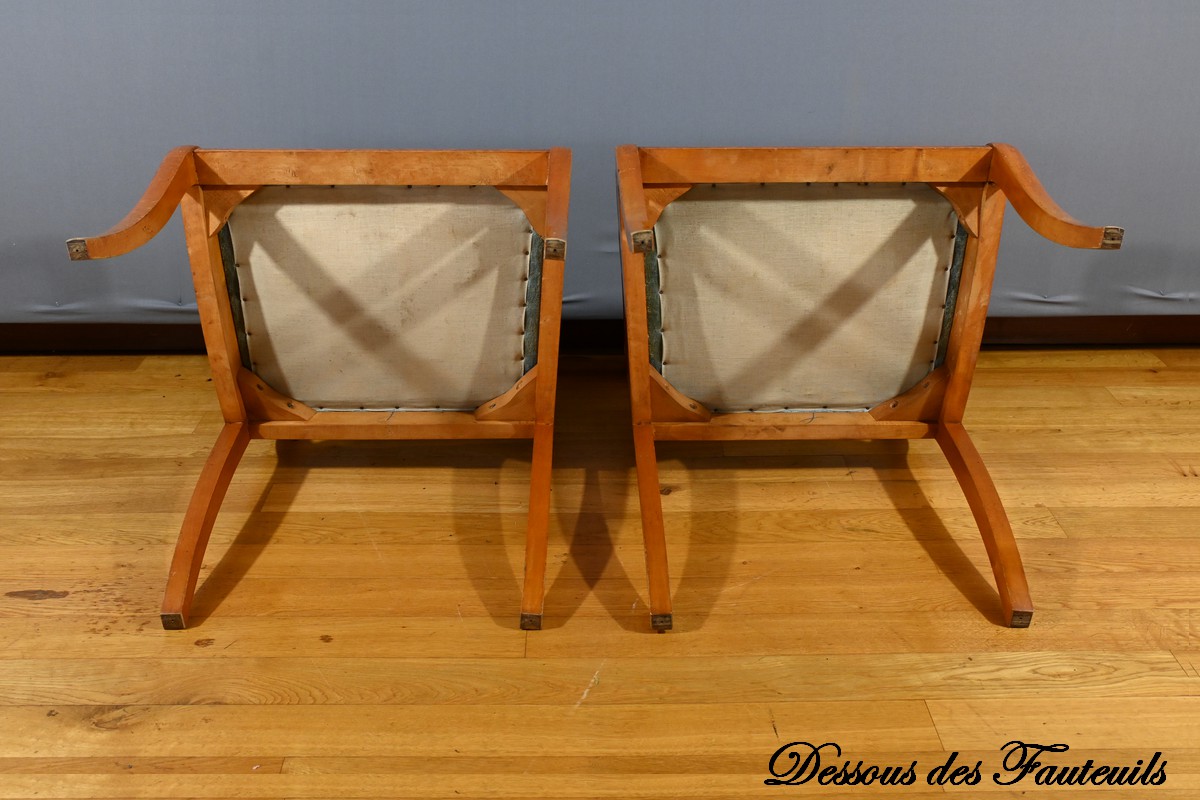 Paire de Fauteuils en Érable Moucheté, style Charles X – Milieu XXe