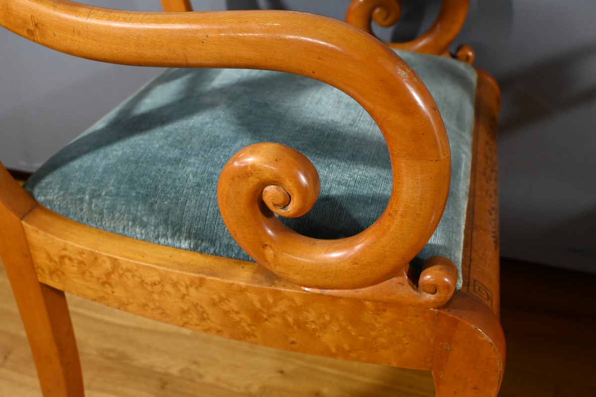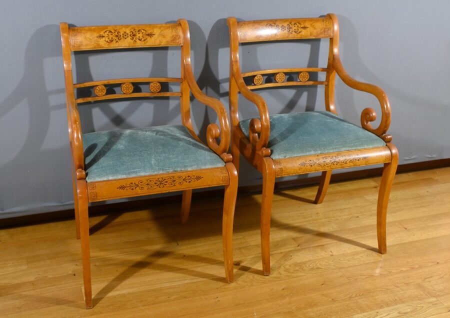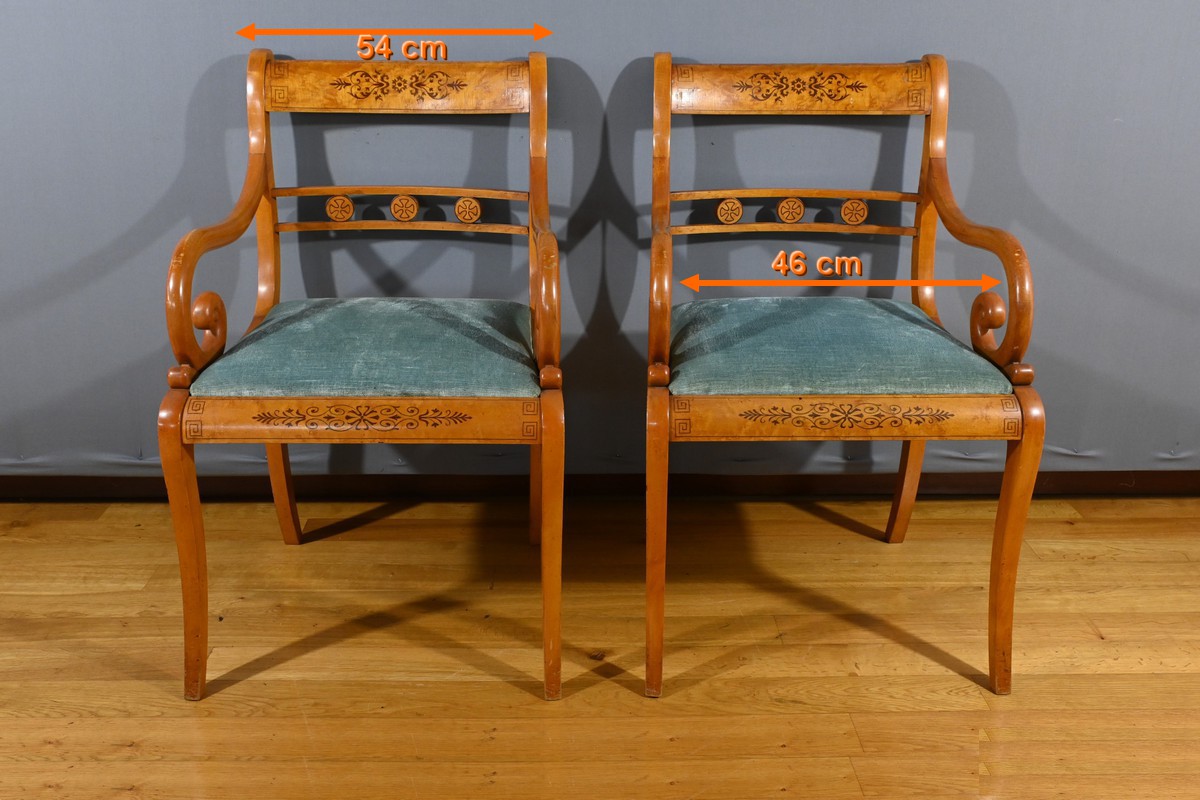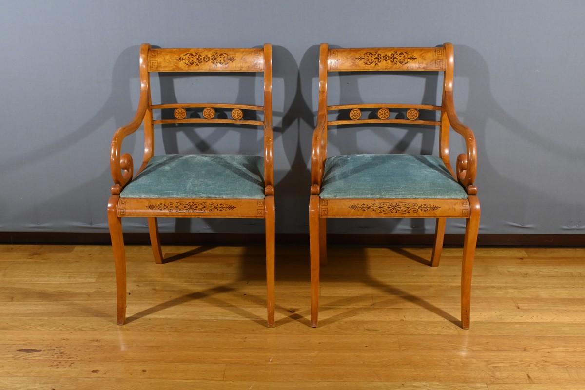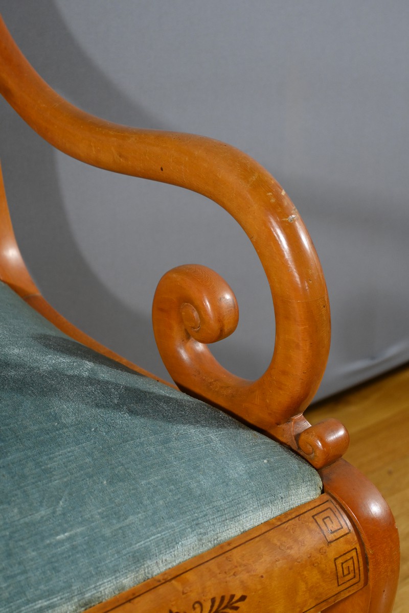 Paire de Fauteuils en Érable Moucheté, style Charles X – Milieu XXe