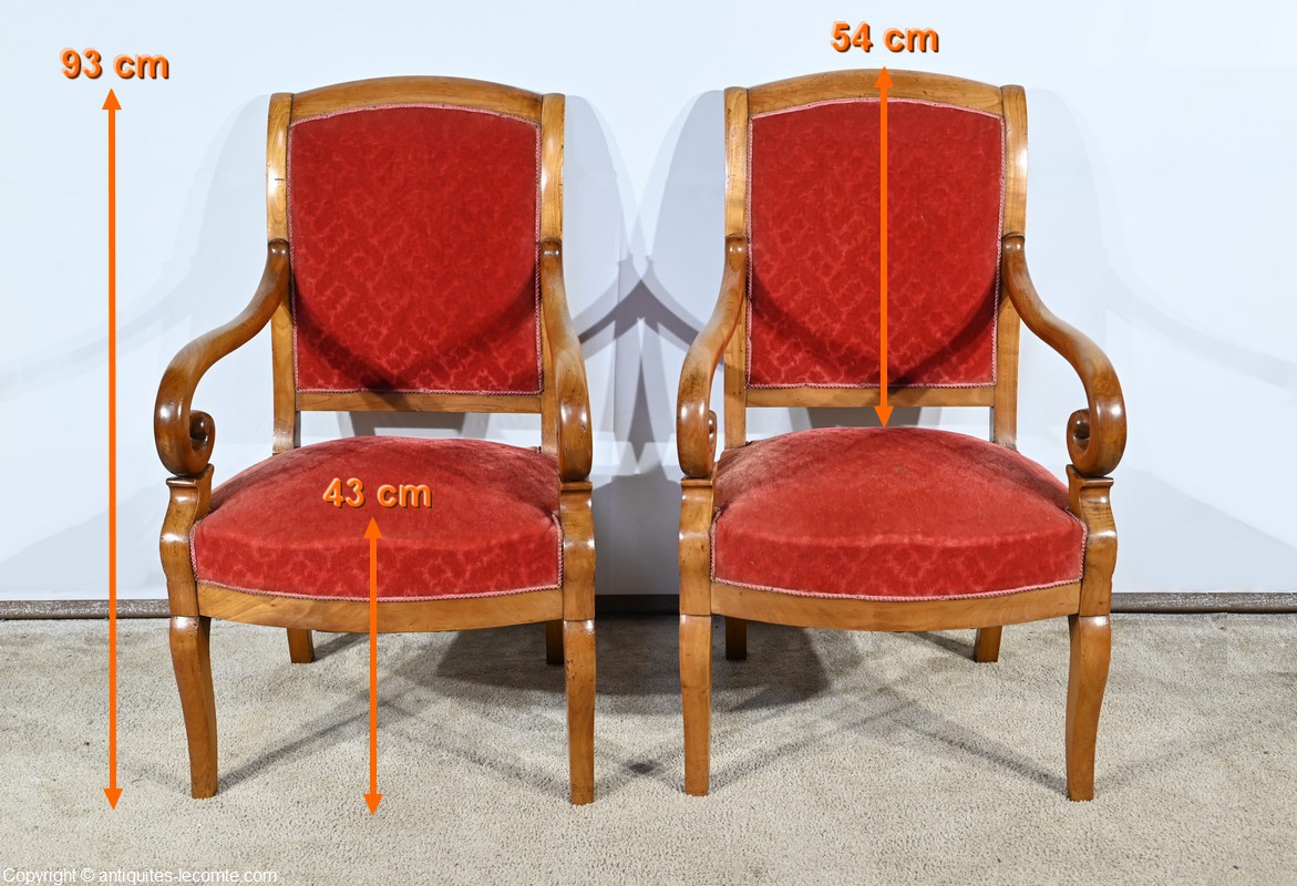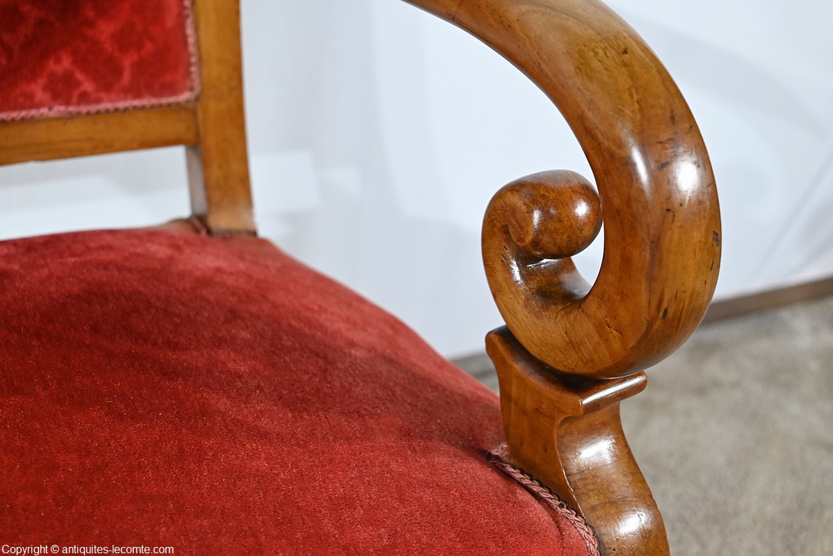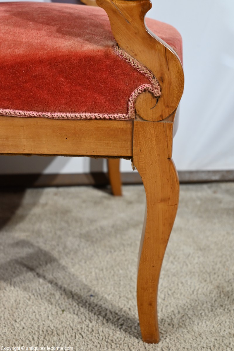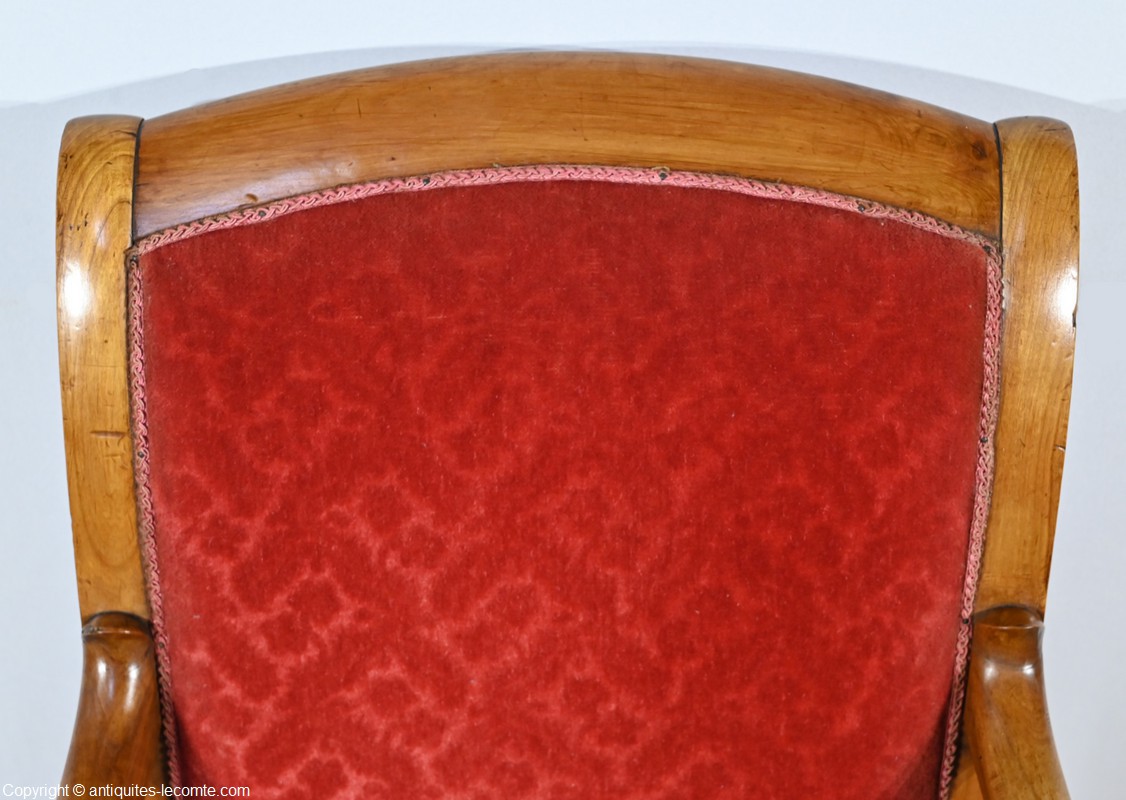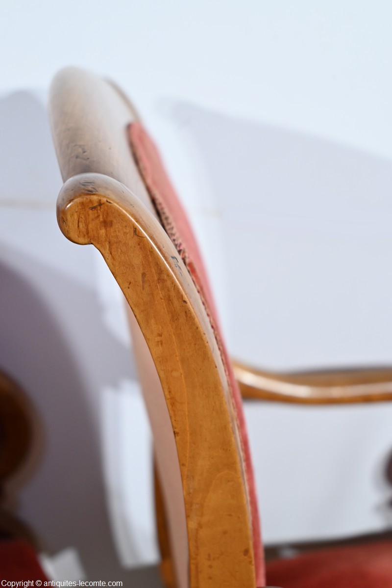 Ces fauteuils d’époque en merisier, se distinguent par des lignes douces propres au style Louis Philippe.