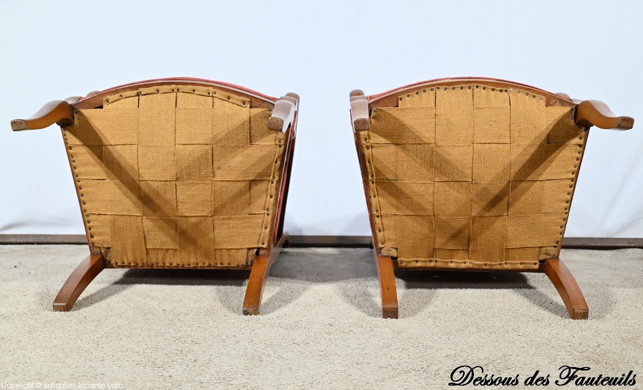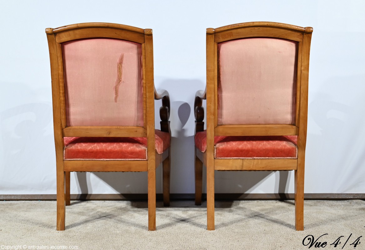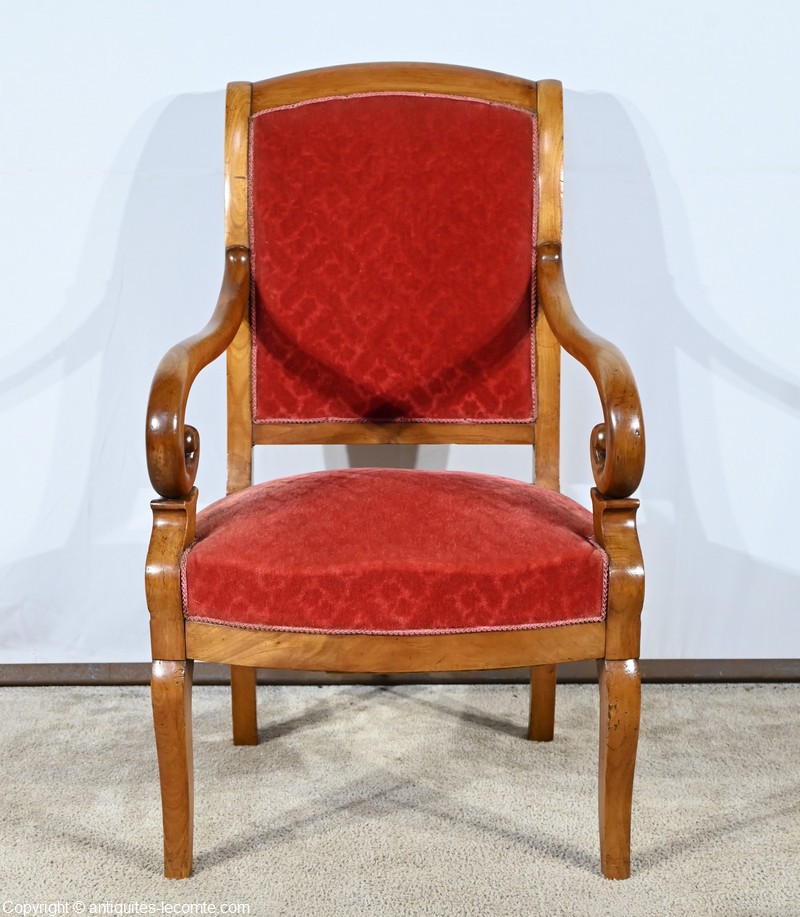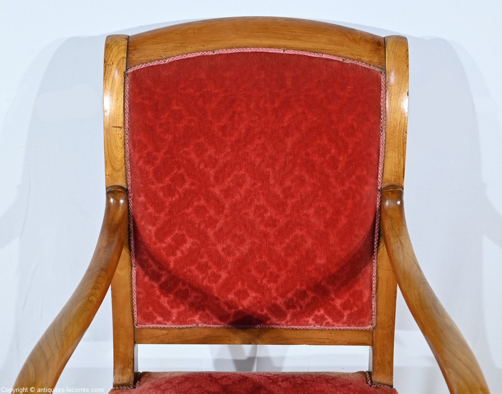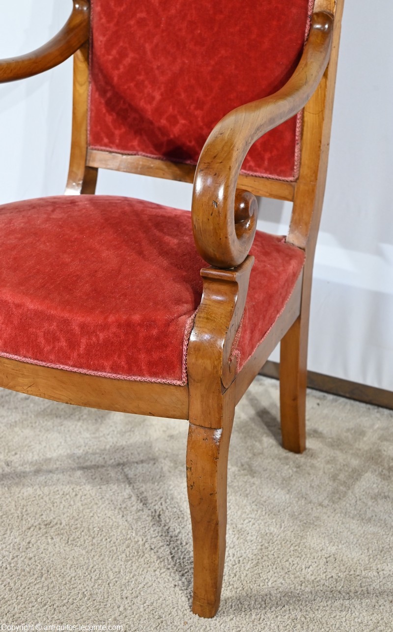 Ces fauteuils d’époque en merisier, se distinguent par des lignes douces propres au style Louis Philippe.