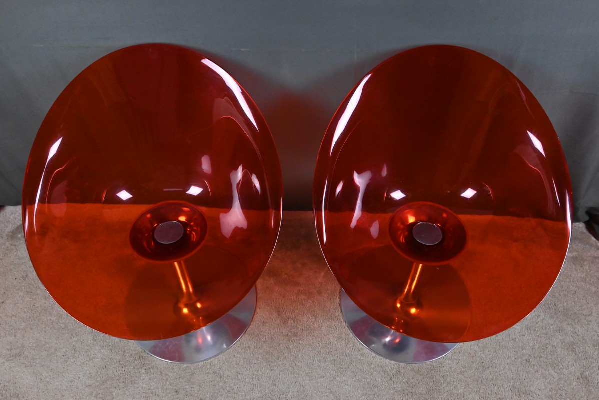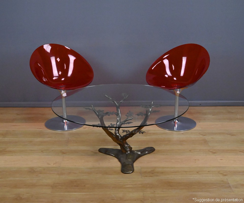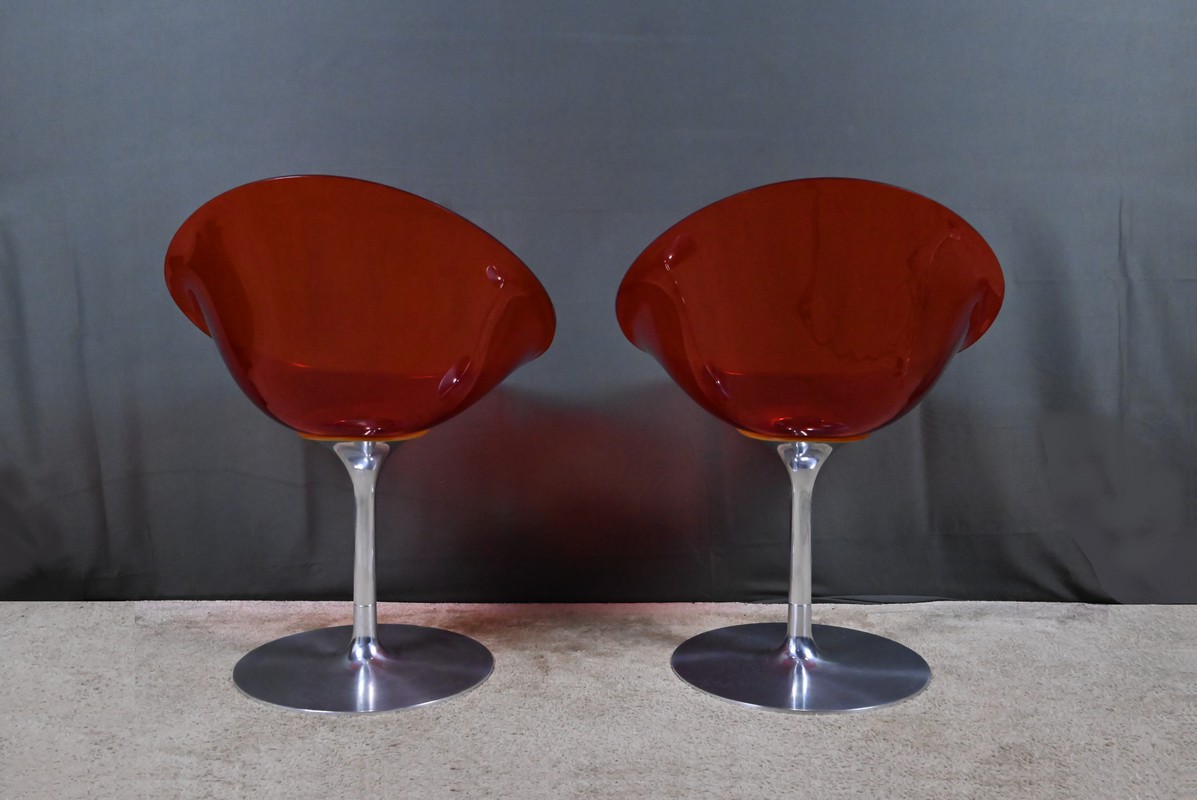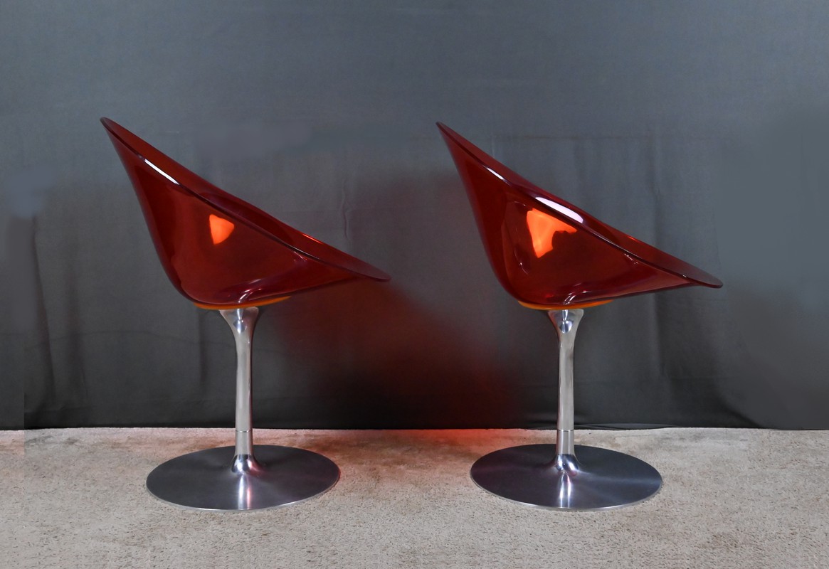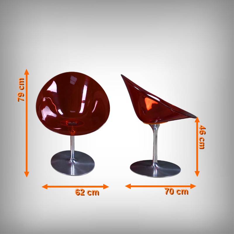 Le fauteuil Eros du designer français Philippe Starck s’impose comme une pièce emblématique du design contemporain, à la fois sculpturale et étonnamment fonctionnelle. Conçu en 2001 comme une coque enveloppante en polycarbonate, il adopte une silhouette d’œuf ouvert, pensée pour accueillir le corps avec douceur tout en affirmant une présence visuelle forte.