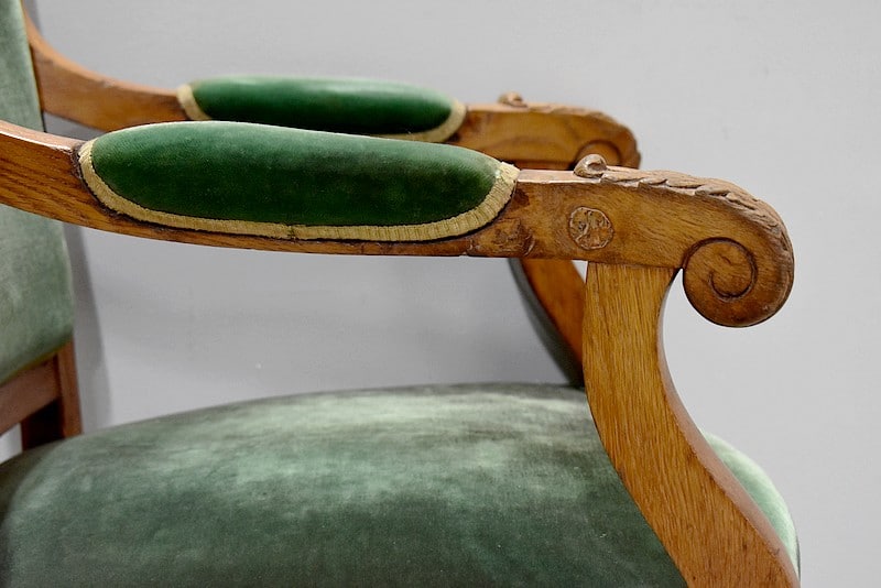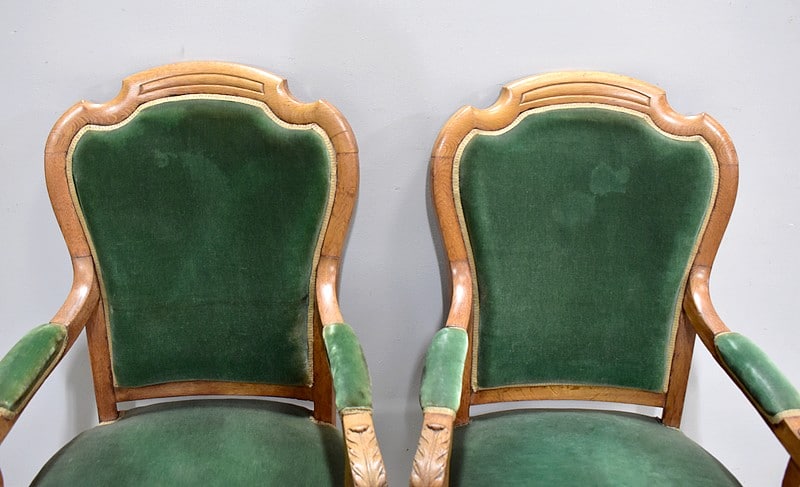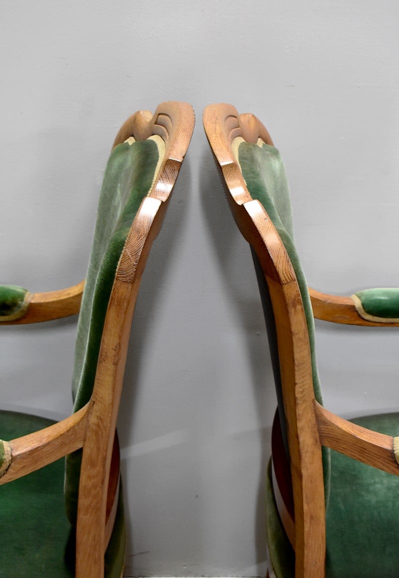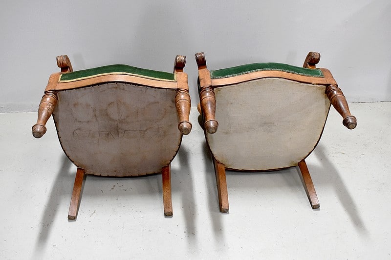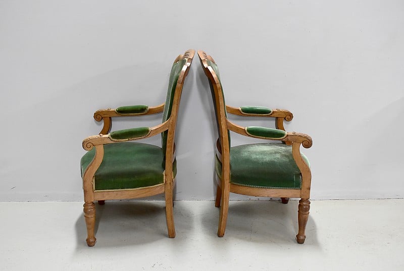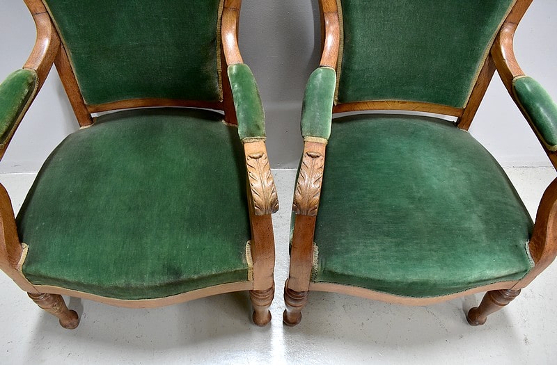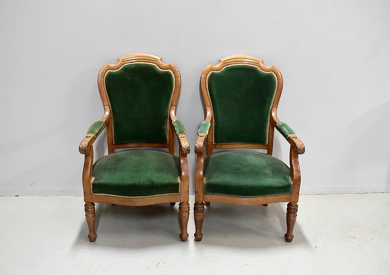 Élégante paire de fauteuils Louis-Philippe en Chêne doré massif.