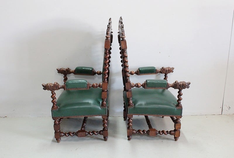 Paire de fauteuils de style Louis XIII en Chêne massif.