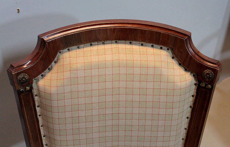 Paire de fauteuils Cabriolets de style Louis XVI en acajou de Cuba massif et placage dans les frises.