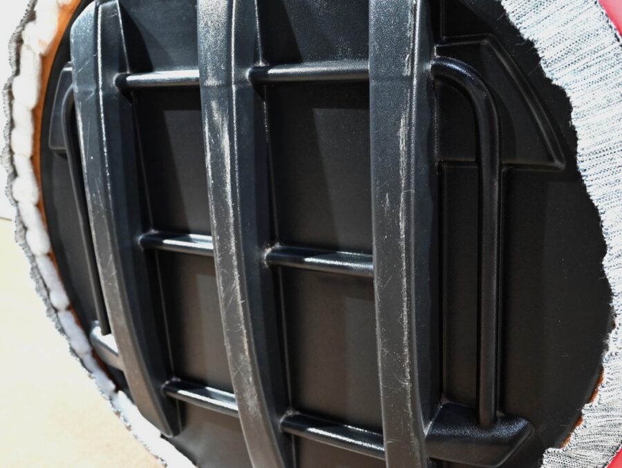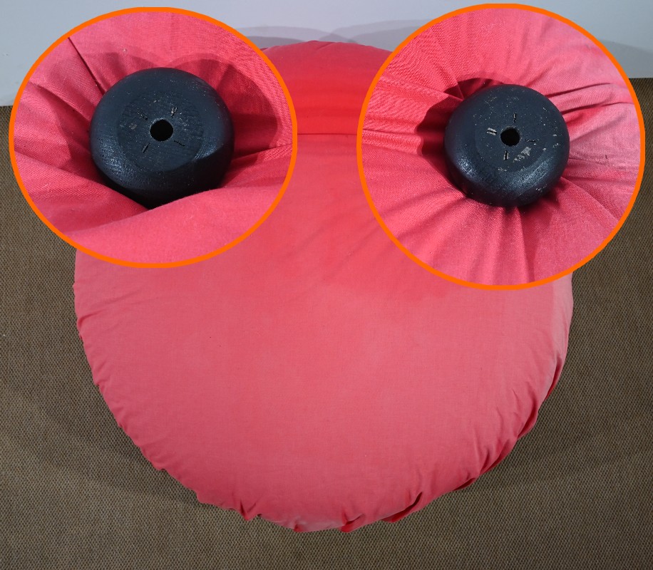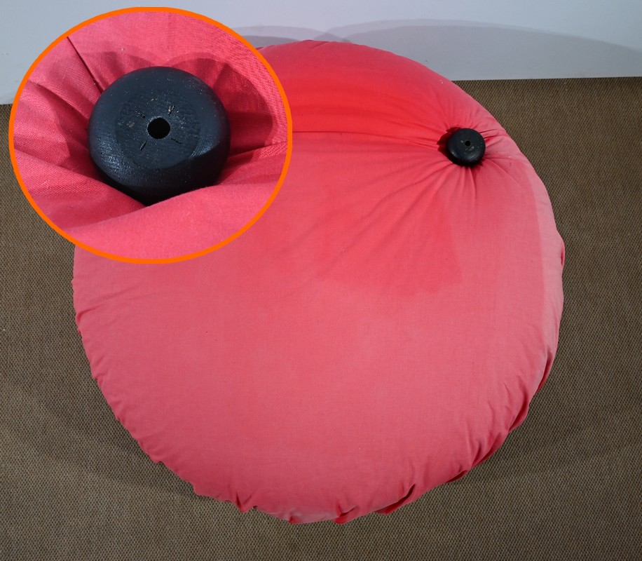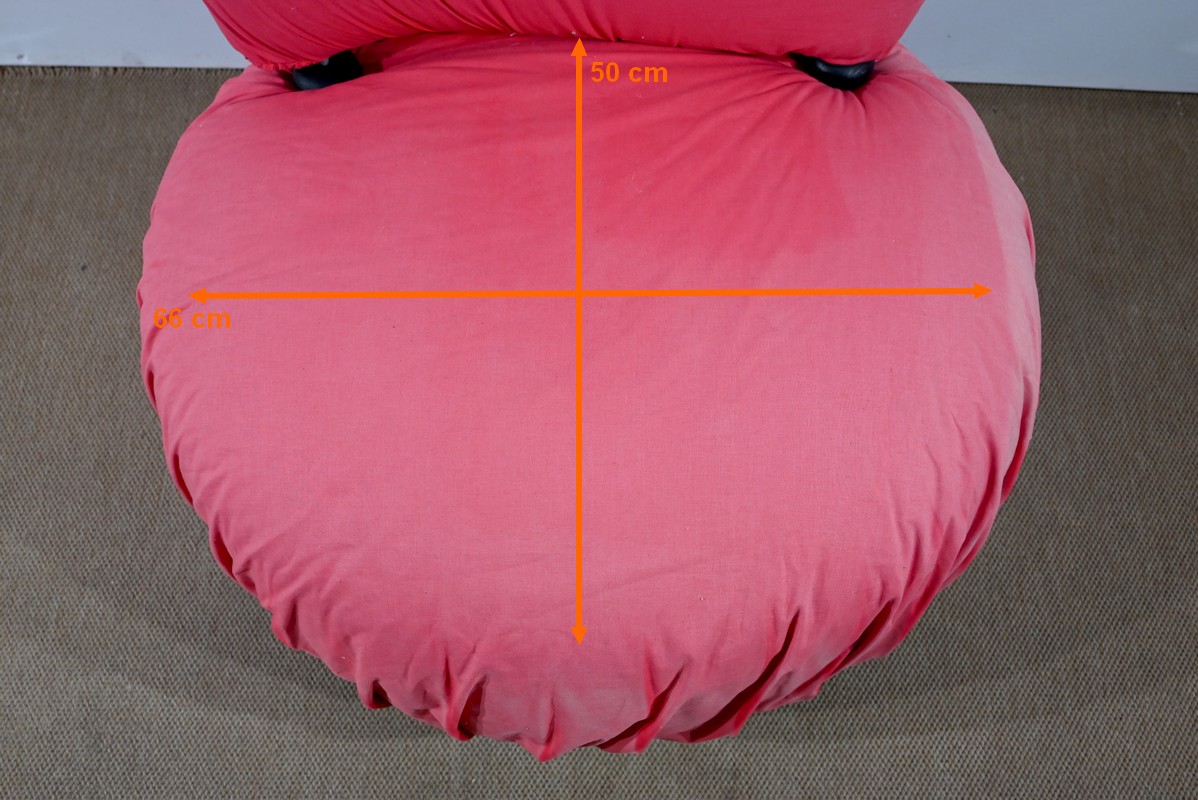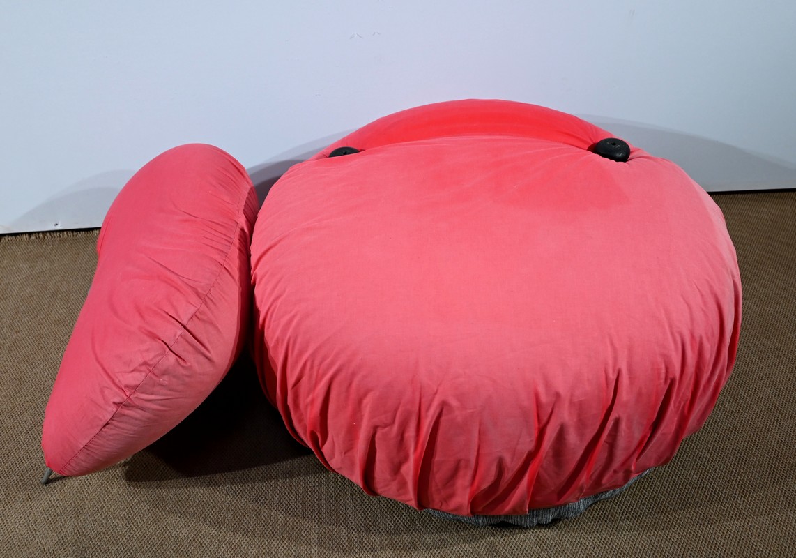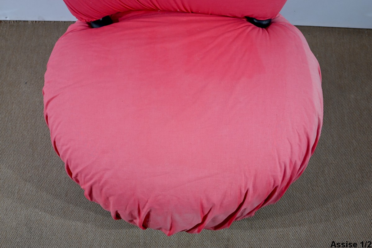 Ces produits design, de forme circulaire, sont garnis d’un tissu rouge grenadine. Les dossiers amovibles sont fixés à l’aide de tiges métalliques dans l’esprit des repose-têtes de sièges pour automobiles.