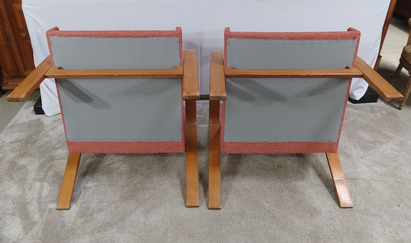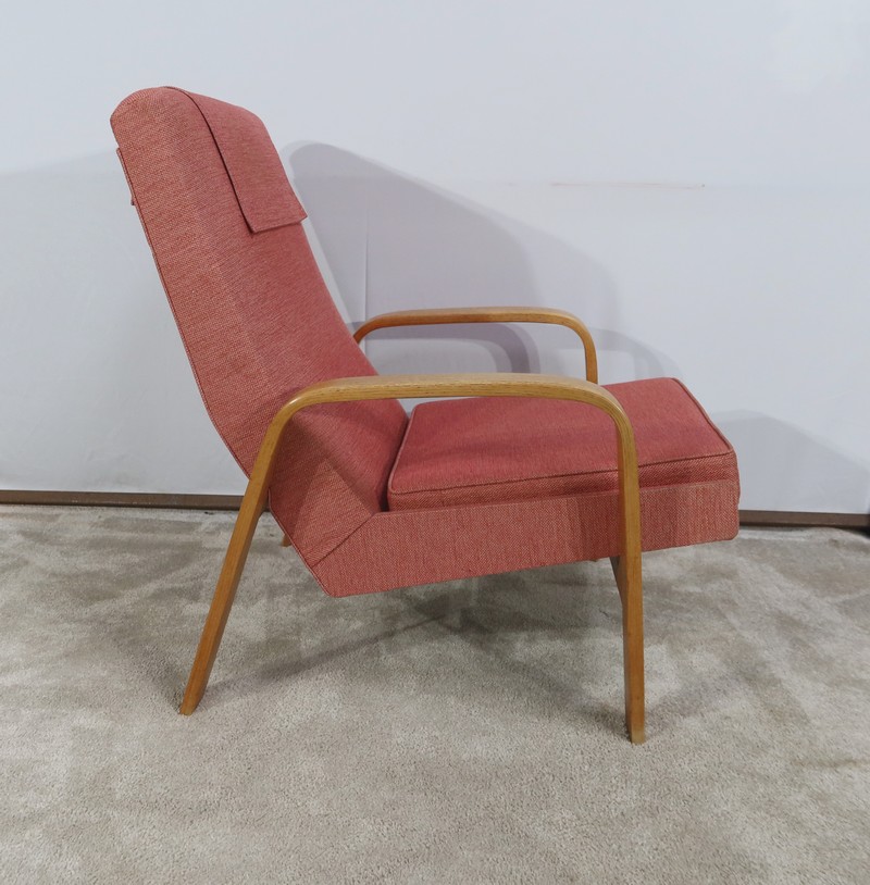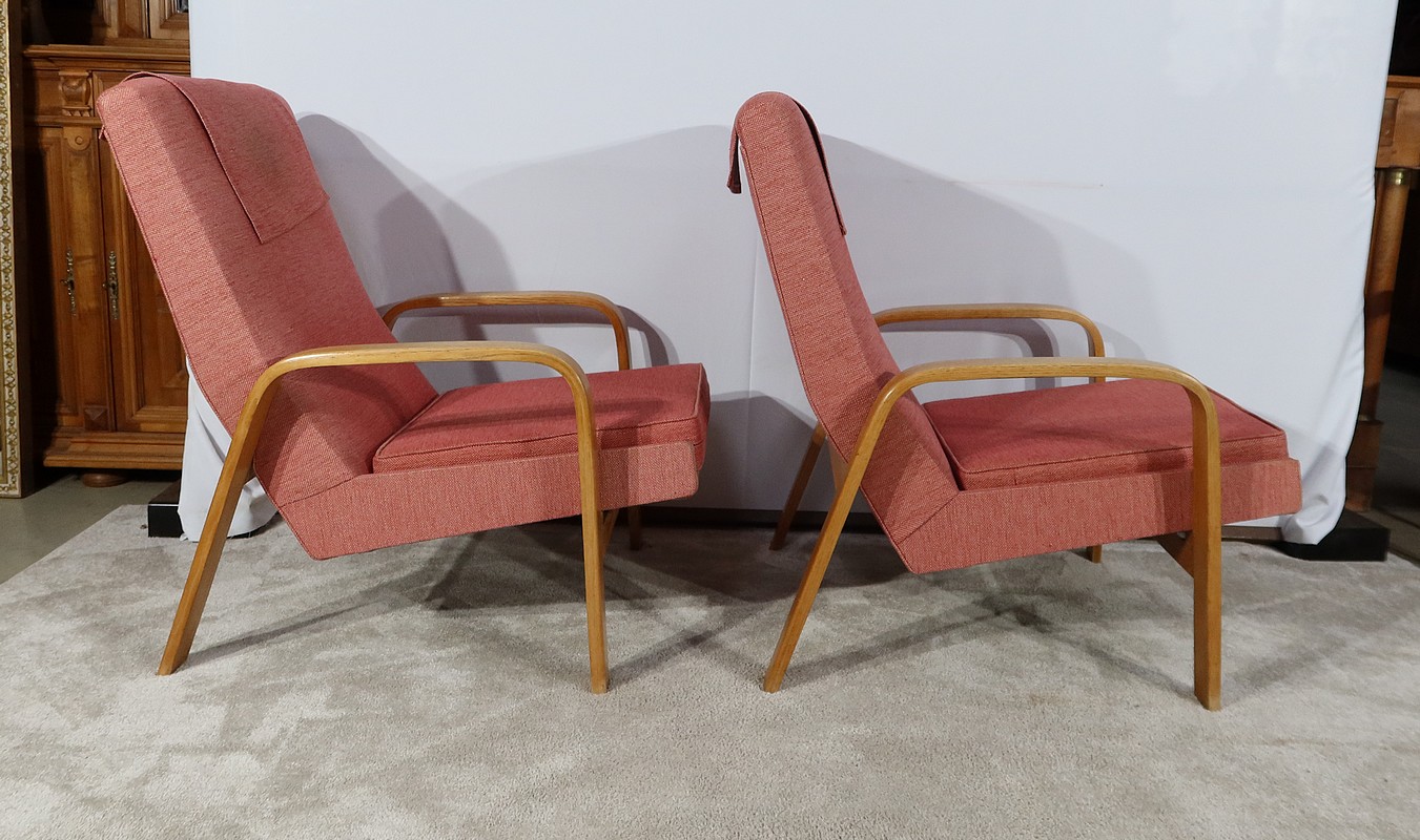 Paire de Fauteuils vintage en bois joliment courbé de forme incurvée.