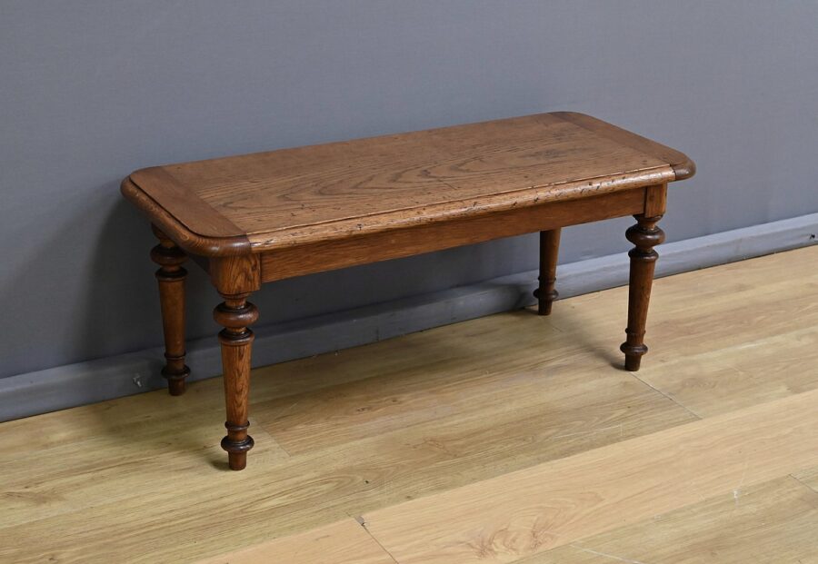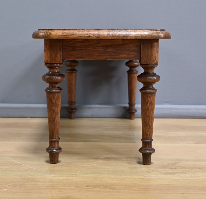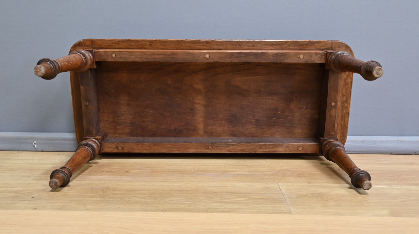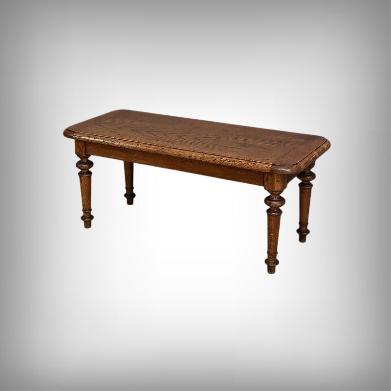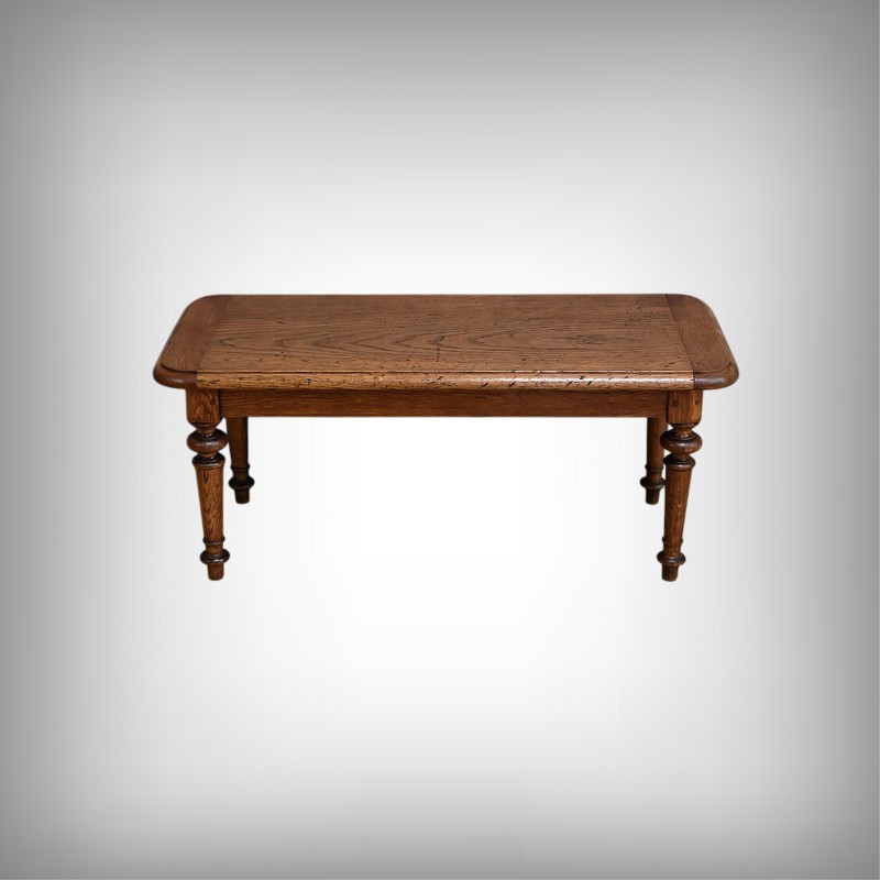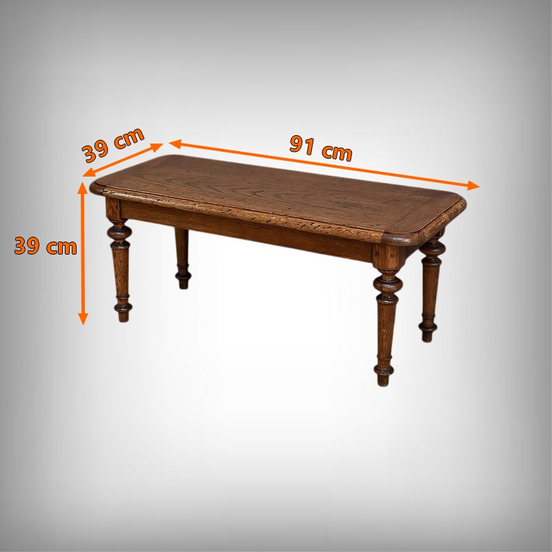Ce banc en chêne, datant de la fin du XIXe siècle, est une pièce au charme authentique. Son plateau est ceinturé d’un bec de corbin, témoignant du savoir-faire artisanal de l’époque. Les coins arrondis adoucissent sa silhouette et lui confèrent une élégance discrète. Il repose sur de magnifiques pieds tournés, à la fois robustes et décoratifs, qui assurent stabilité et allure classique. Ce banc ancien trouvera naturellement sa place dans une entrée, un salon ou au pied d’un lit, apportant une touche de caractère à votre intérieur.