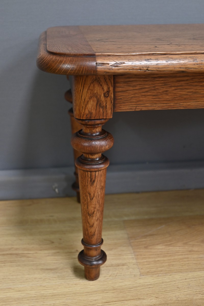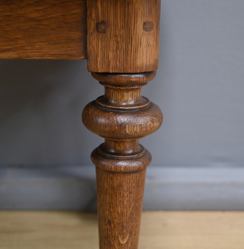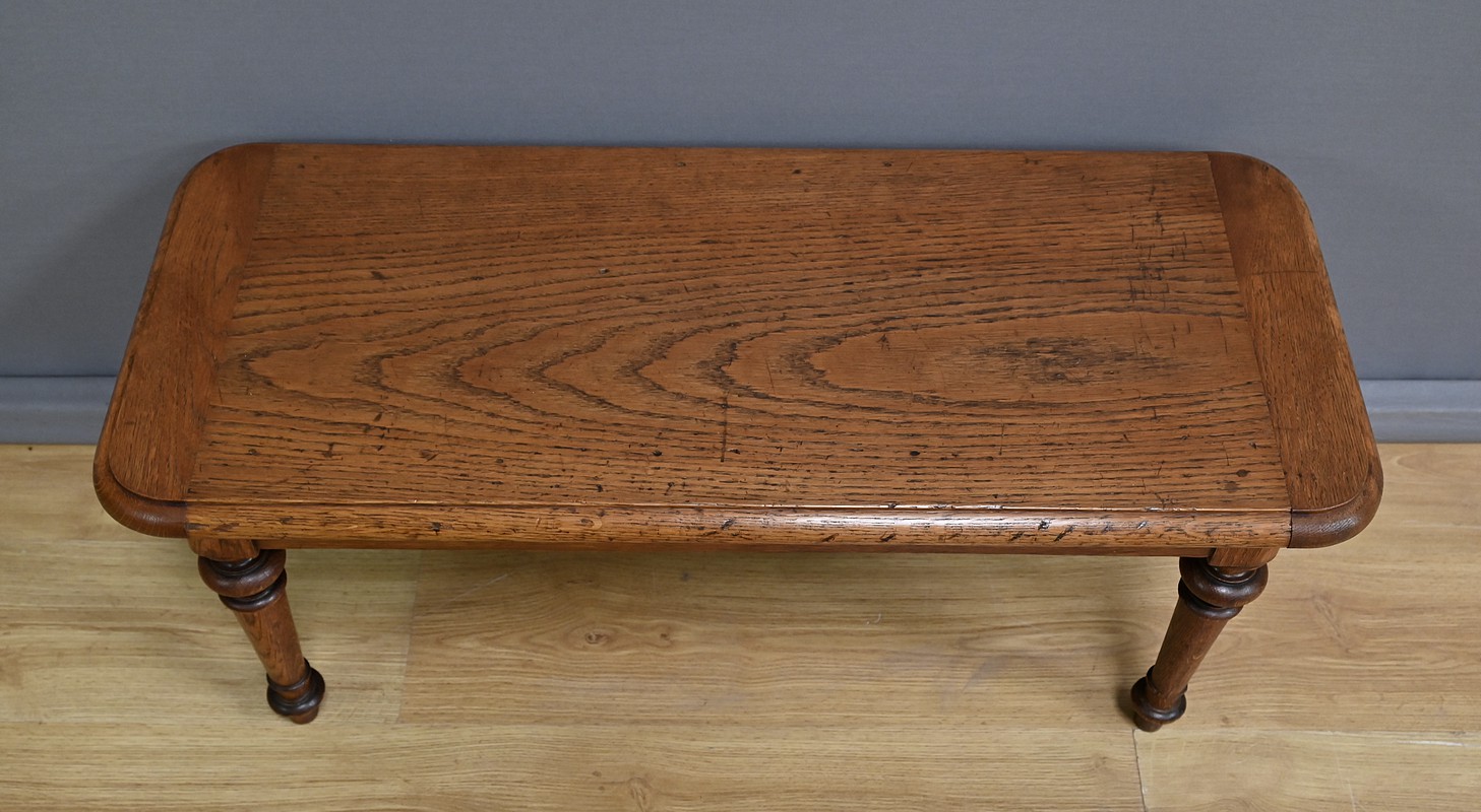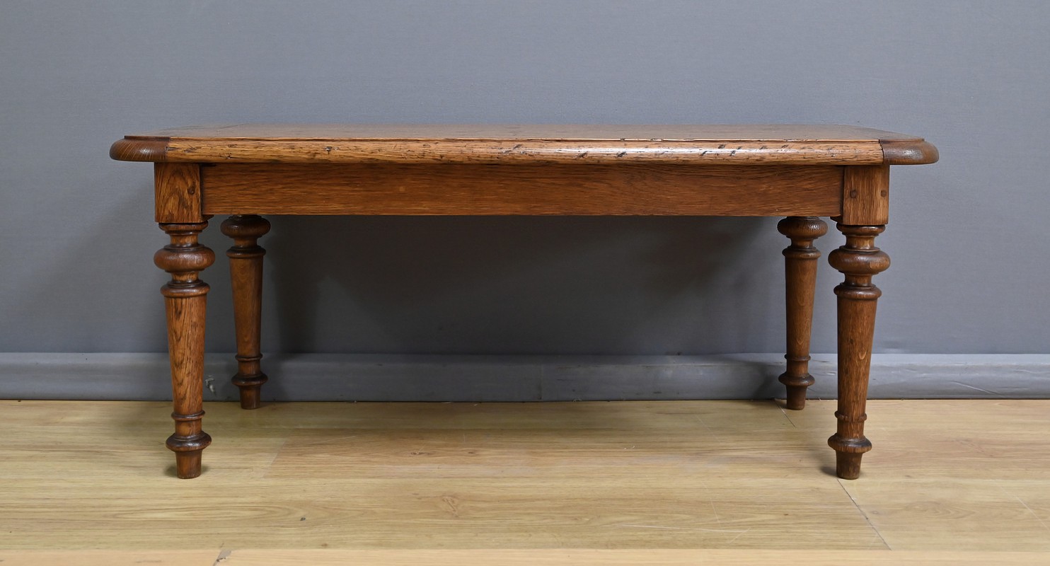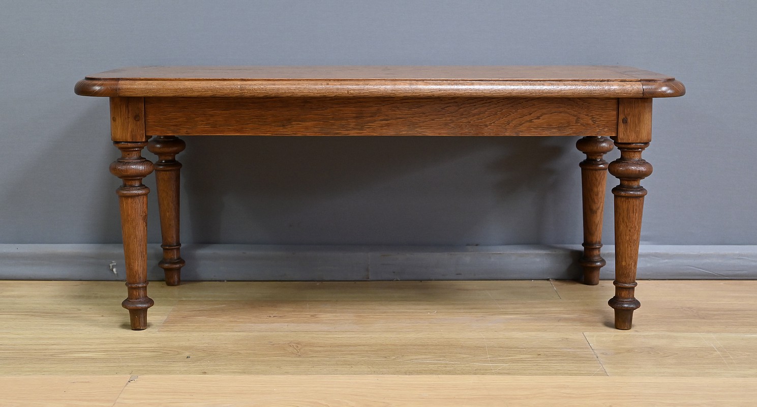 Ce banc en chêne, datant de la fin du XIXe siècle, est une pièce au charme authentique. Son plateau est ceinturé d’un bec de corbin, témoignant du savoir-faire artisanal de l’époque. Les coins arrondis adoucissent sa silhouette et lui confèrent une élégance discrète. Il repose sur de magnifiques pieds tournés, à la fois robustes et décoratifs, qui assurent stabilité et allure classique. Ce banc ancien trouvera naturellement sa place dans une entrée, un salon ou au pied d’un lit, apportant une touche de caractère à votre intérieur.