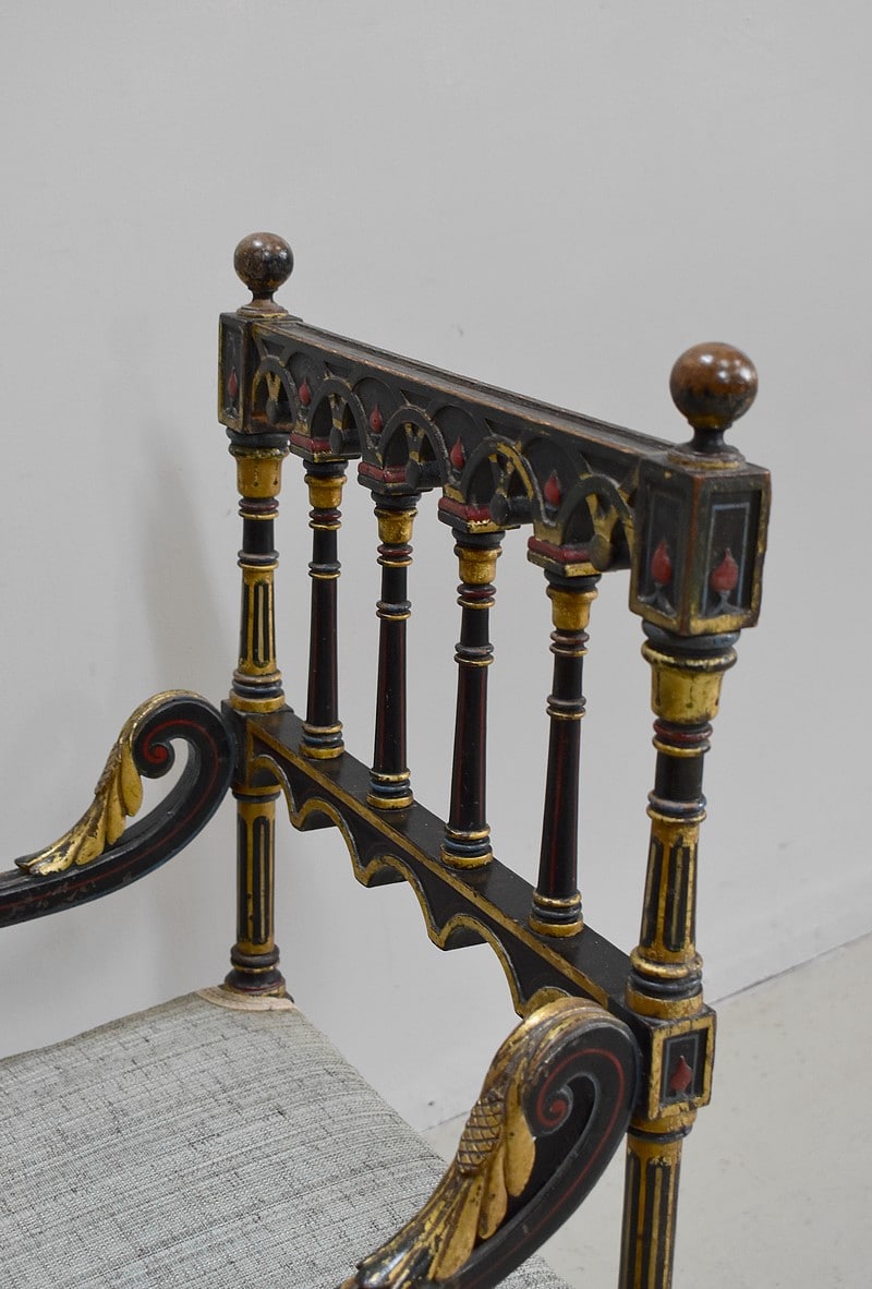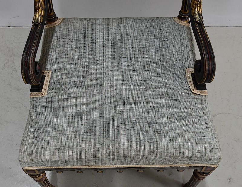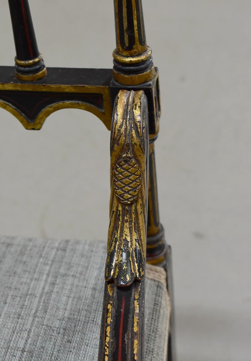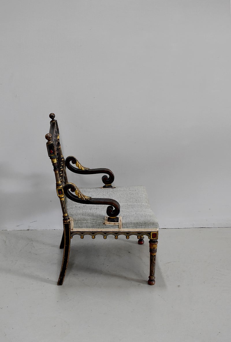 Petit fauteuil Napoléon III en bois noirci, peint et doré, dans son état d’origine.