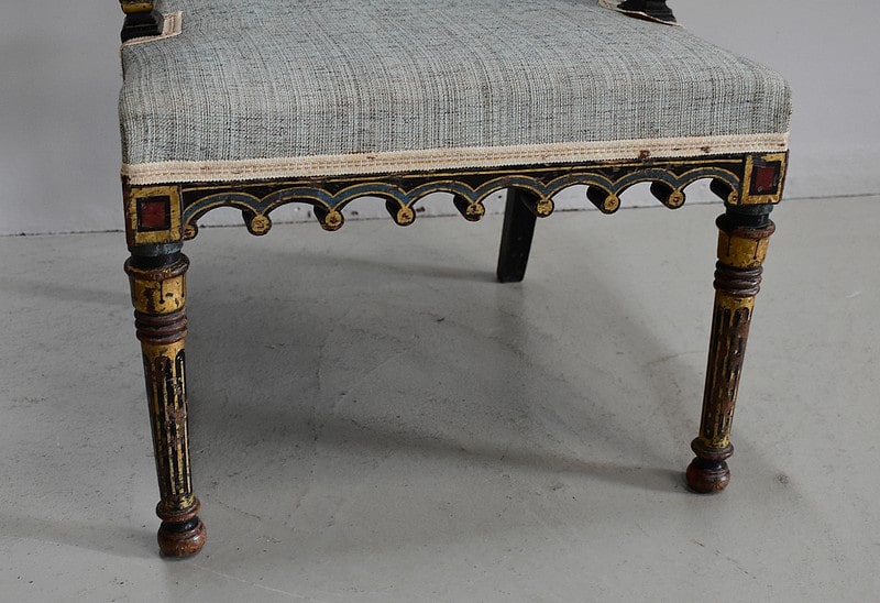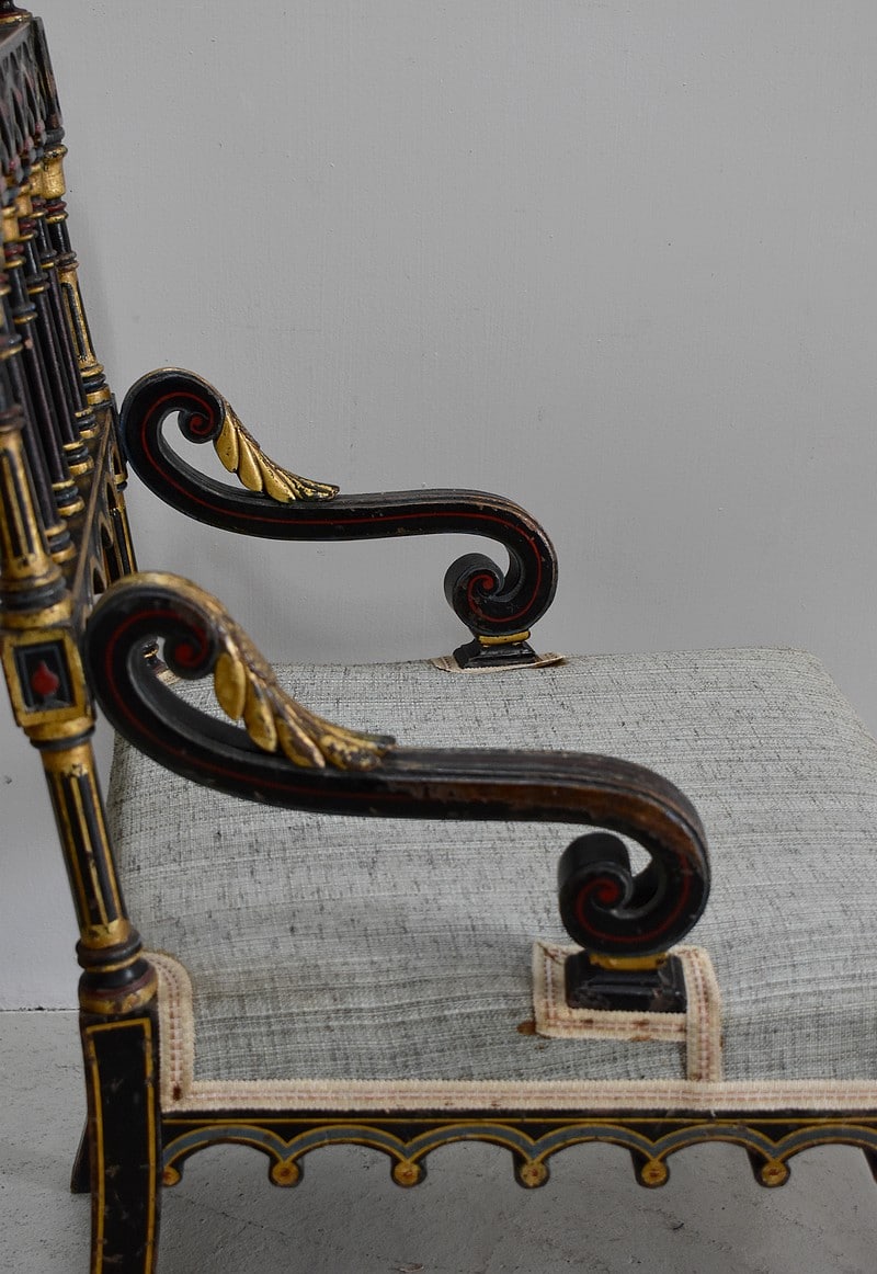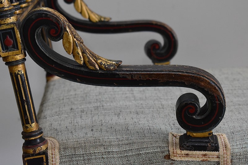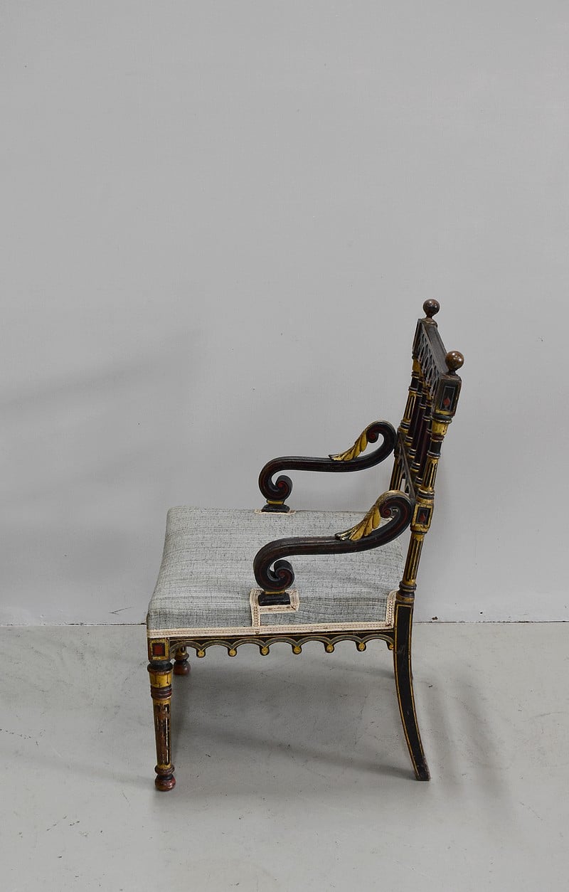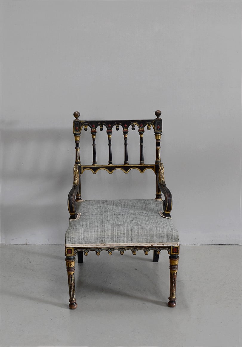 Petit fauteuil Napoléon III en bois noirci, peint et doré, dans son état d’origine.