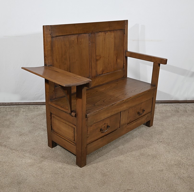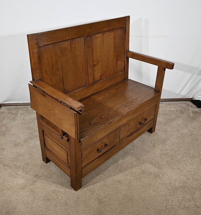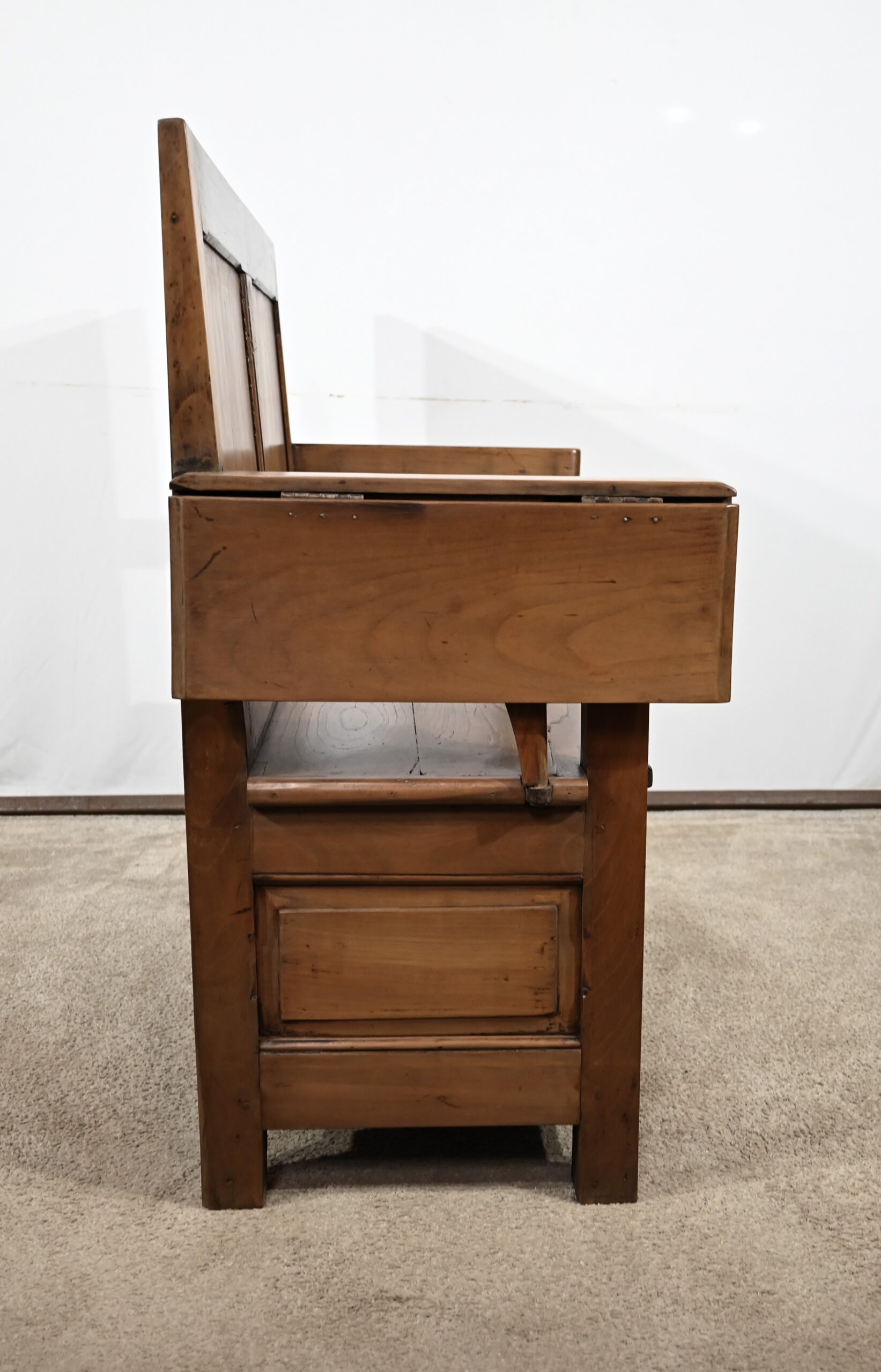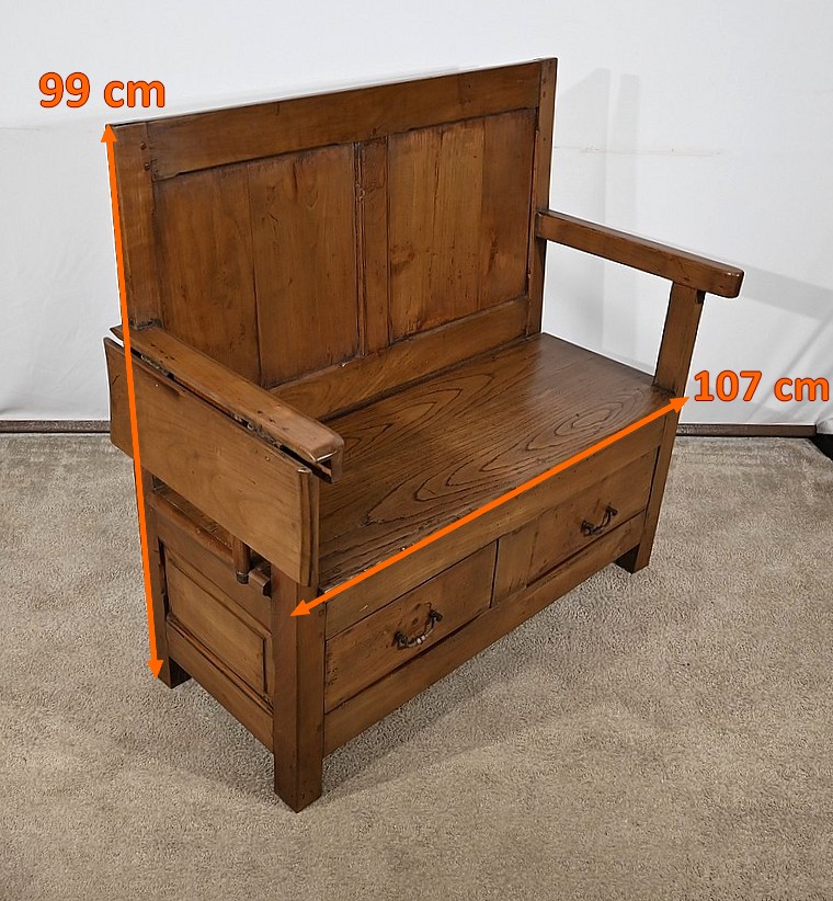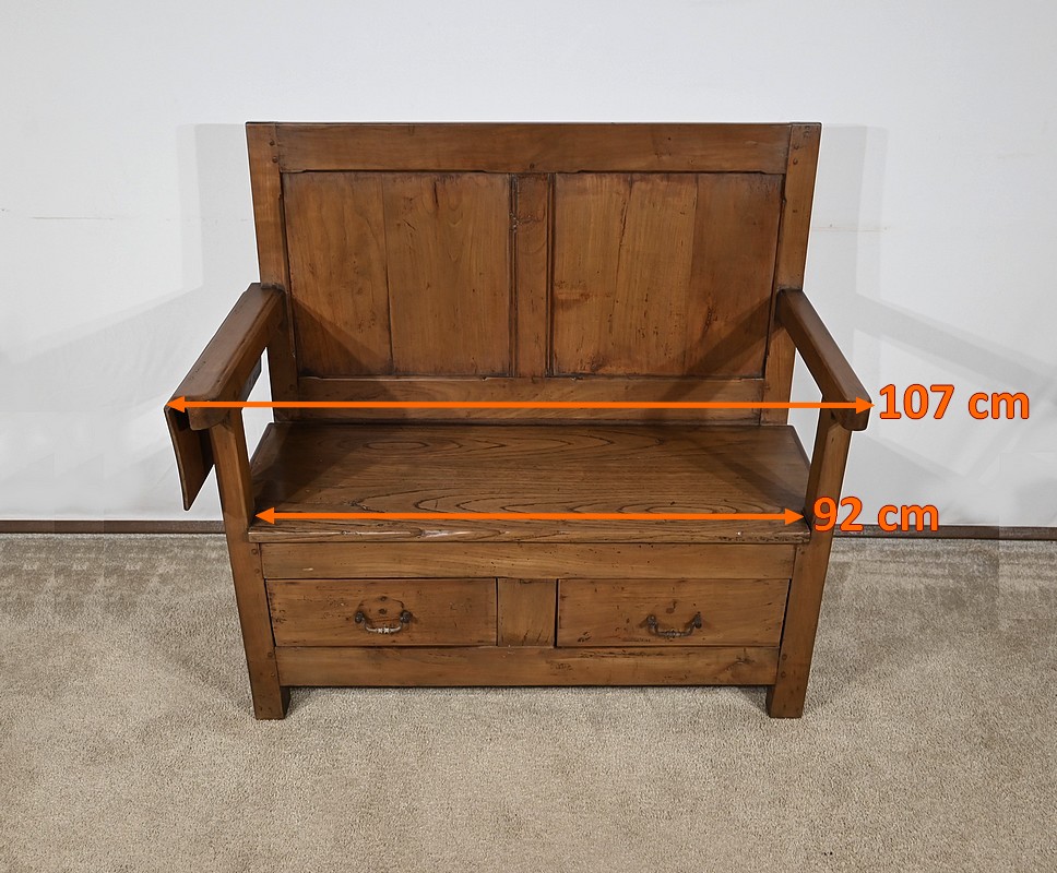 Rare Banc Coffre dit Cantou de Cheminée en Merisier et Châtaignier – 2ème moitié XIXe