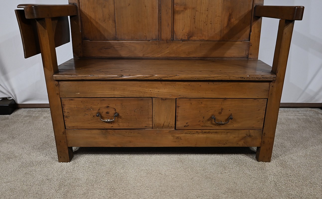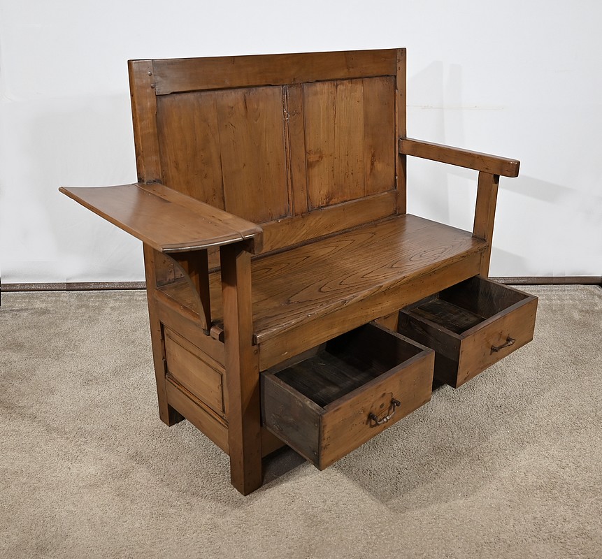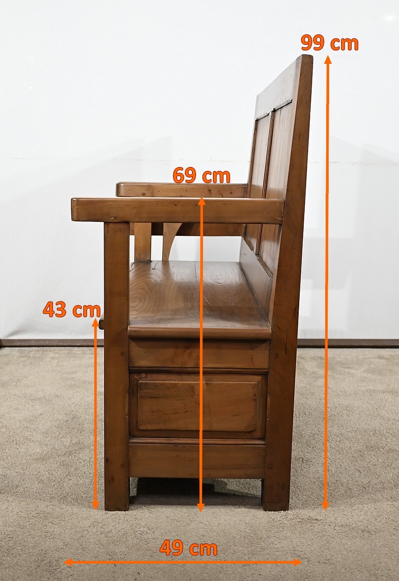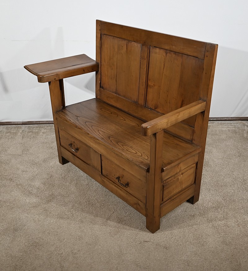 Rare Banc Coffre dit Cantou de Cheminée en Merisier et Châtaignier – 2ème moitié XIXe