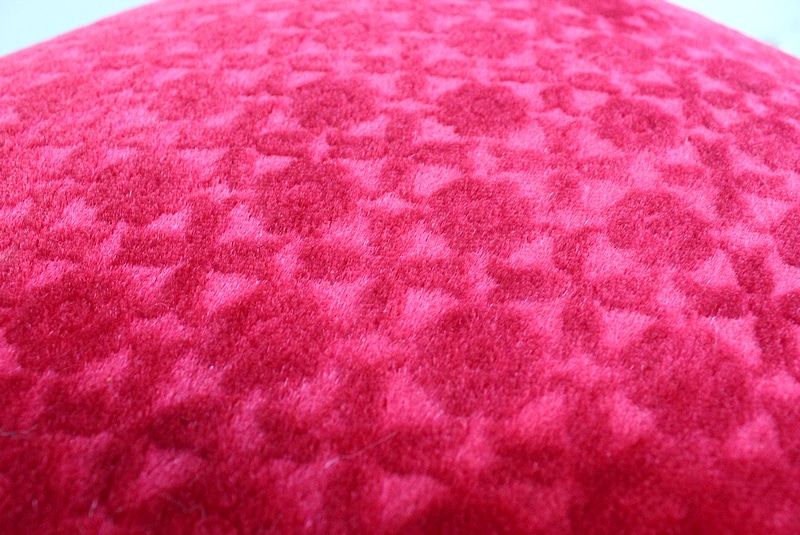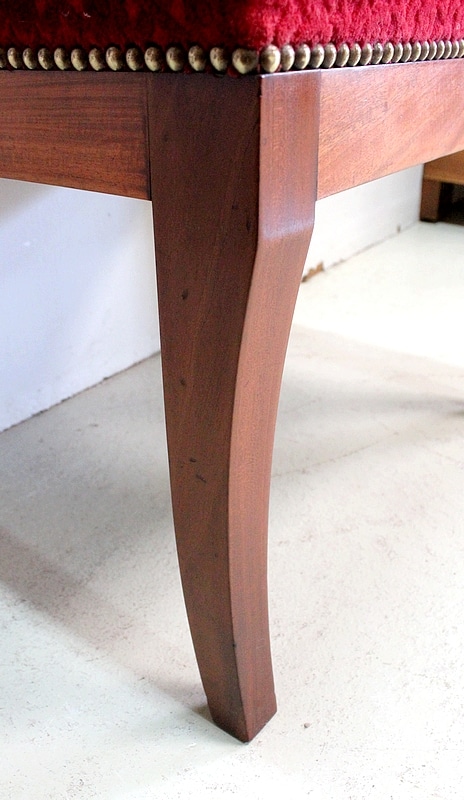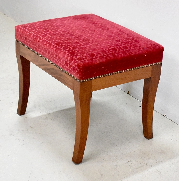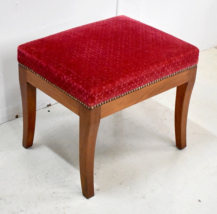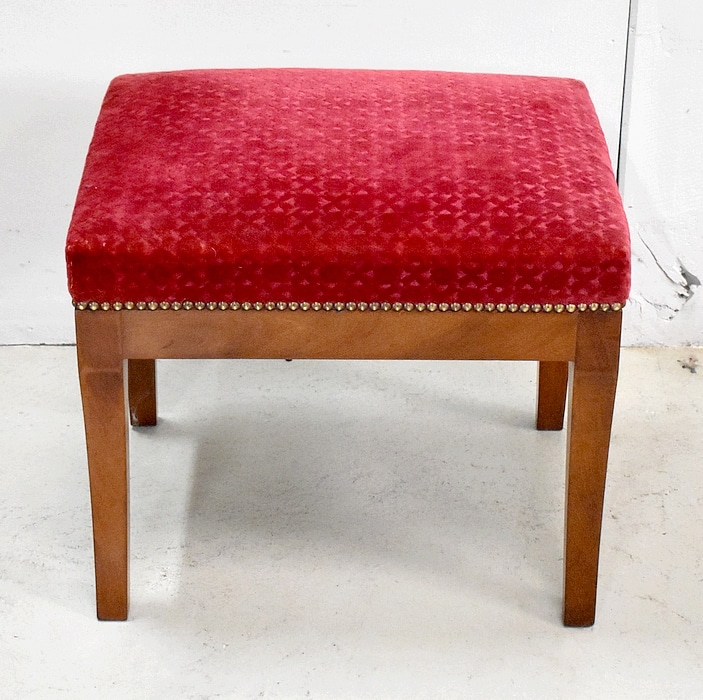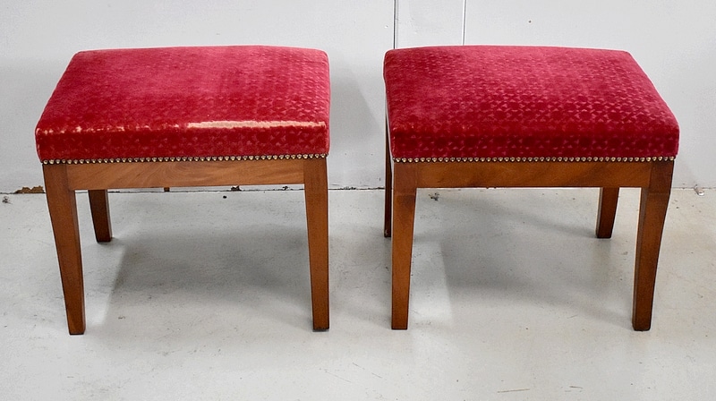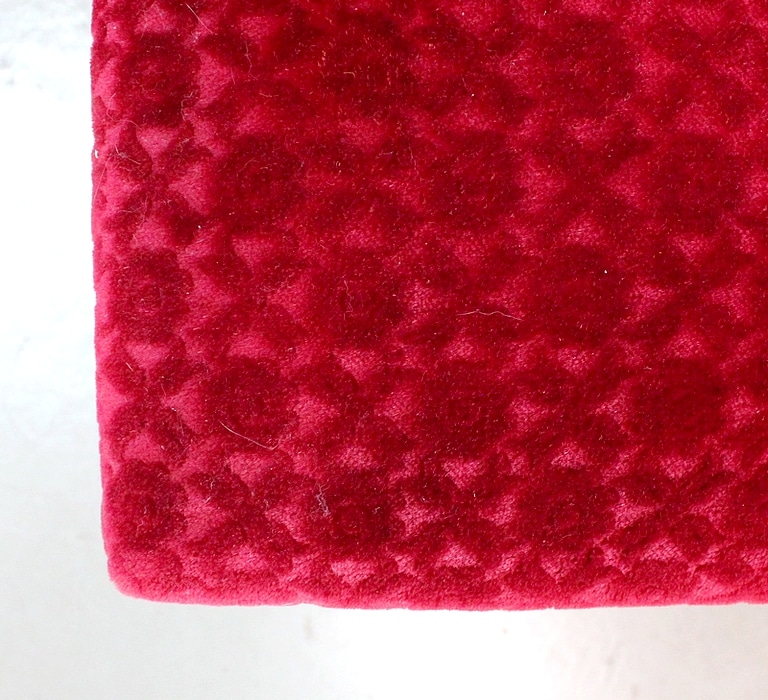 Les assises sont recouvertes d’un Tissu en Velours Rouge Frappé. Ces Tabourets, Confortable et Fermes, ont bénéficié d’une confection Qualitative et Traditionnelle avec Ressorts, Sangles et Crin Animal.