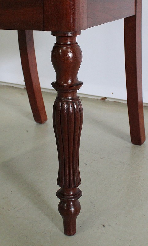 L’Ensemble repose sur deux Pieds avant Tournés et Godronnés. Les deux Pieds arrières en Sabre forment un arc cintré vers l’extérieur.