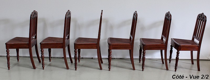 Stables et Solides, ces six Chaises Rares en Bois Précieux possèdent une Assise de Qualité et le Raffinement du mobilier d’époque Restauration.