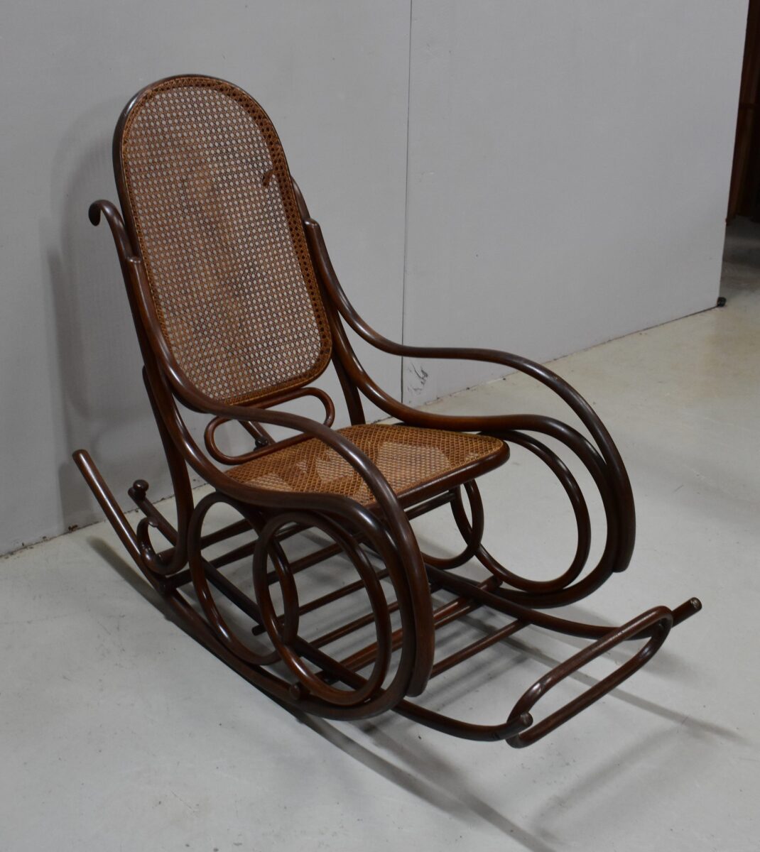Rocking Chair et son Repose pieds en Hêtre, esprit Thonet – 1900