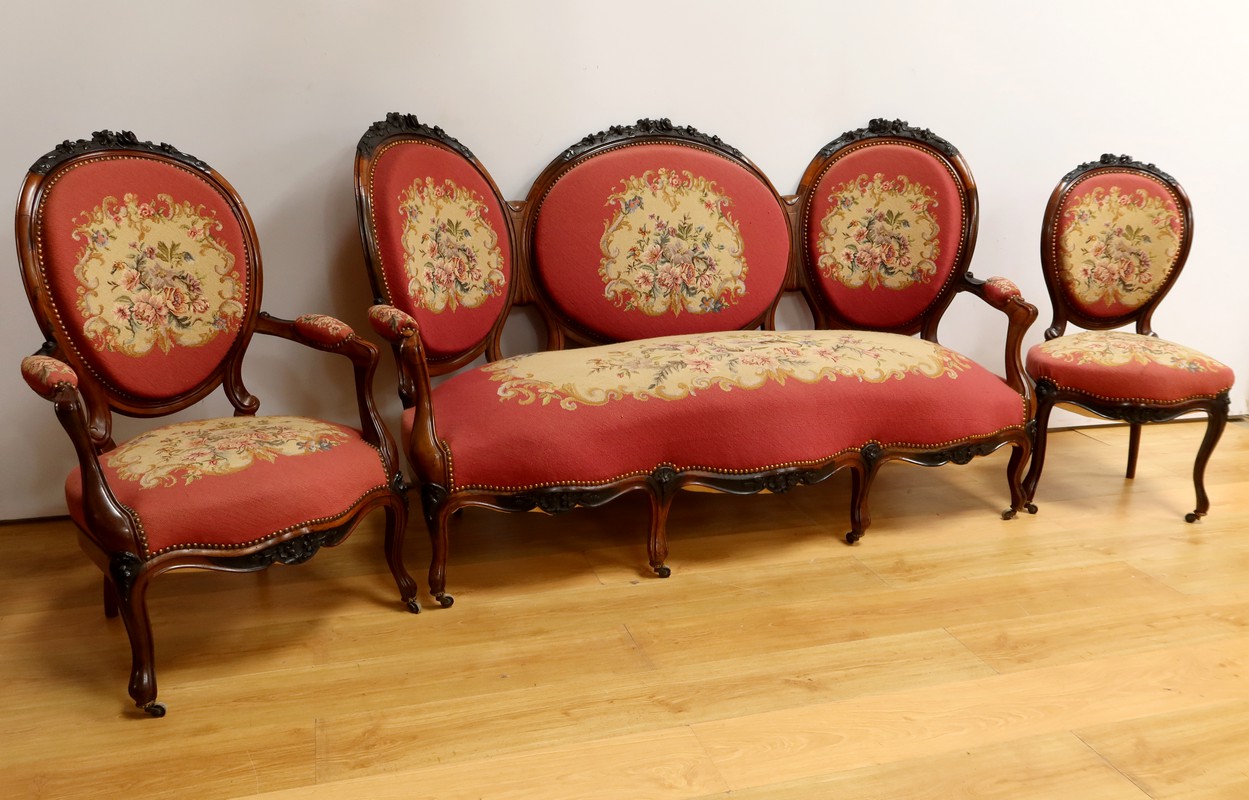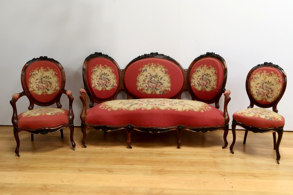 Ce salon incarne parfaitement le style opulent et détaillé de l’époque Napoléon III, alliant confort et esthétique avec une grande maîtrise artisanale.