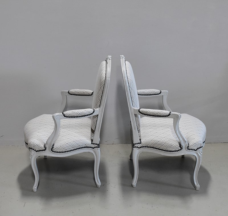 Les accotoirs, ainsi que les dossiers et les pieds sont tous moulurés et sculptés.