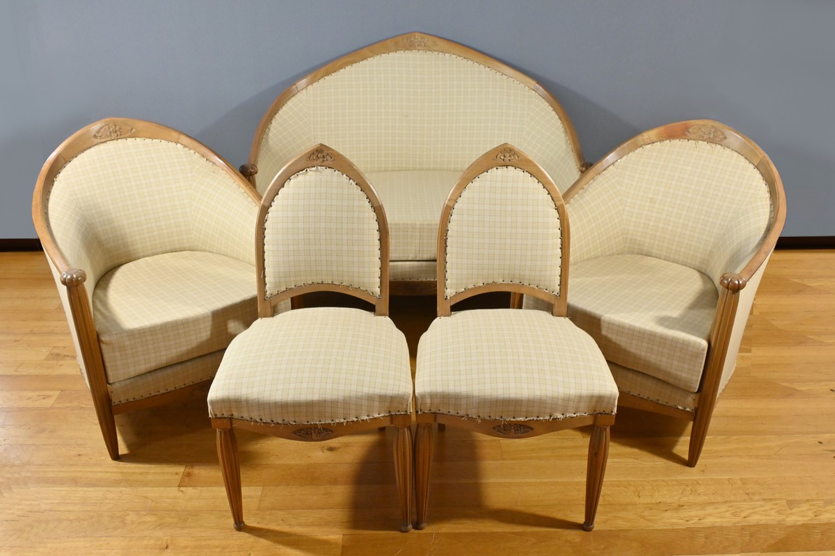 Ce salon* en acajou blond de style art déco, datant de 1940, est une véritable œuvre d’art.