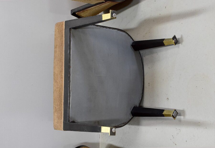 Ils reposent sur 4 pieds gainés agrémentés de sabots carrés biseautés en métal doré.