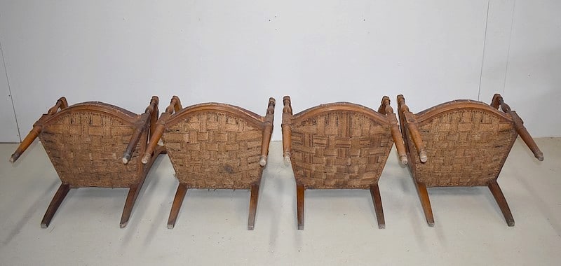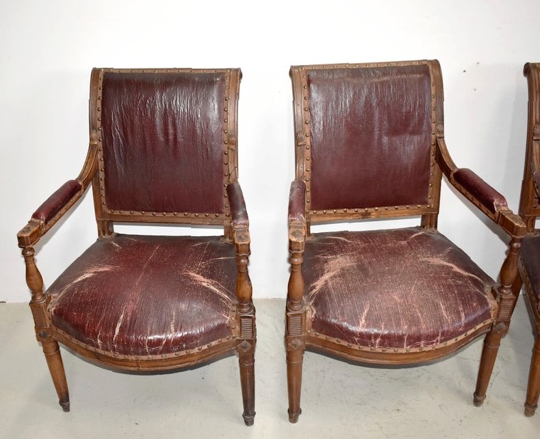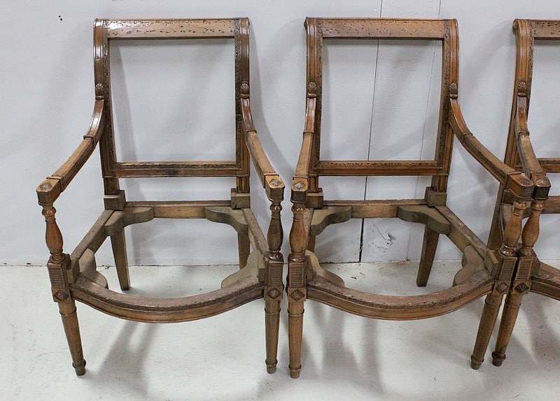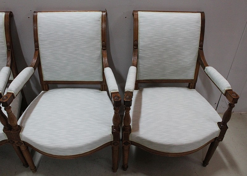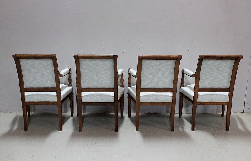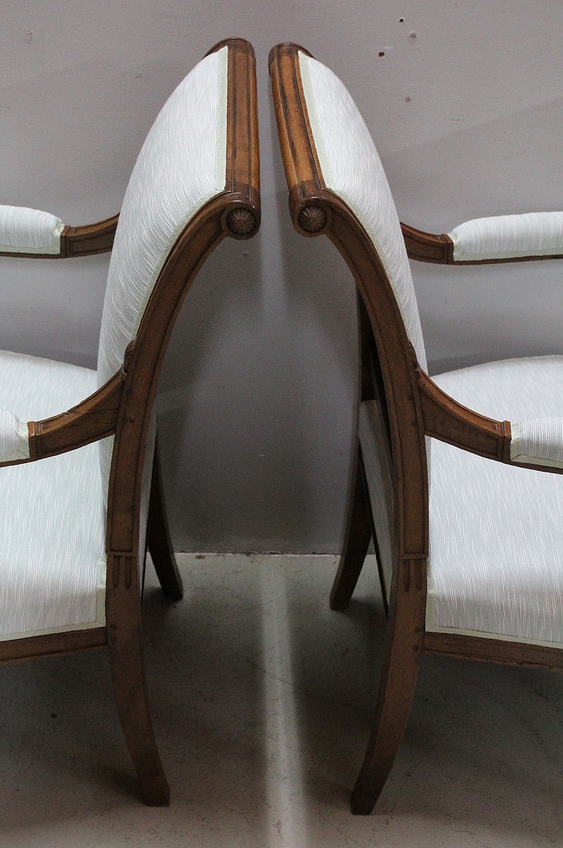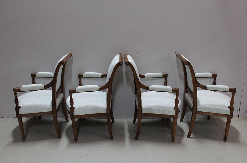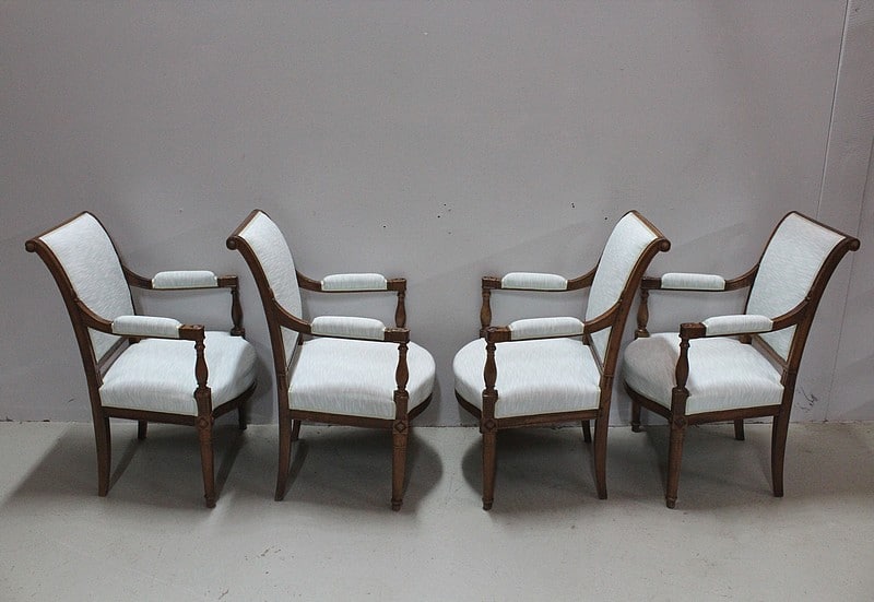 Suite de 4 fauteuils Directoire en Noyer blond massif.