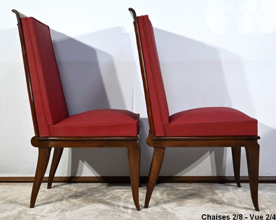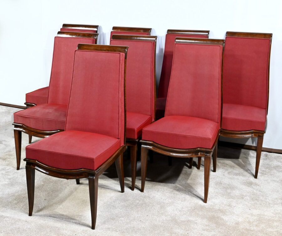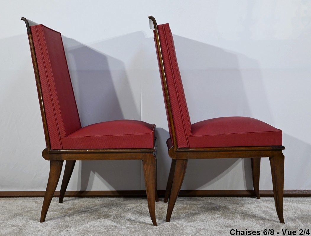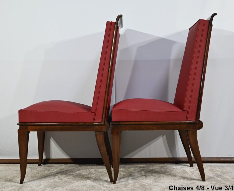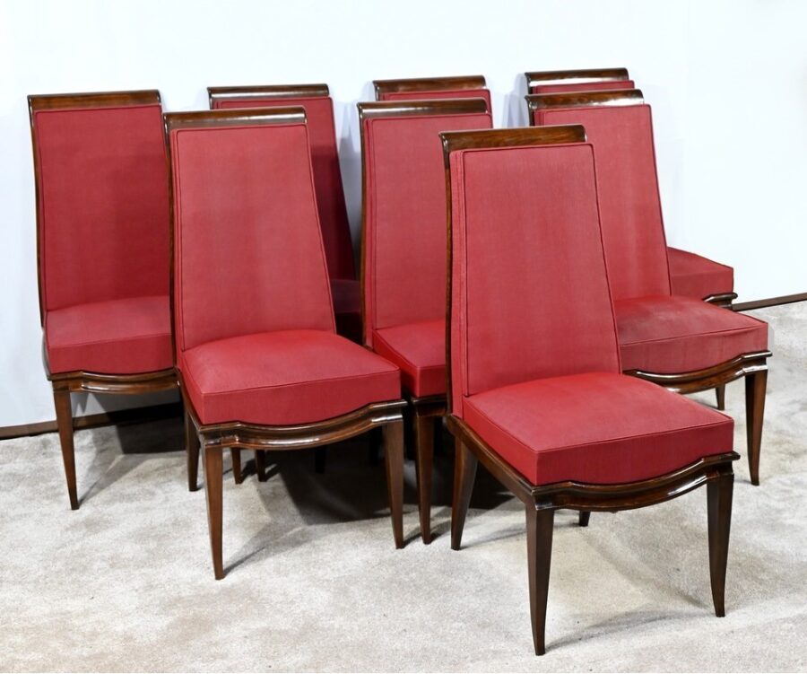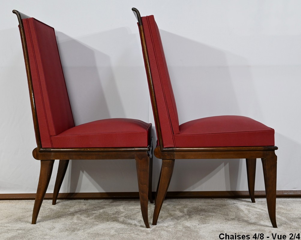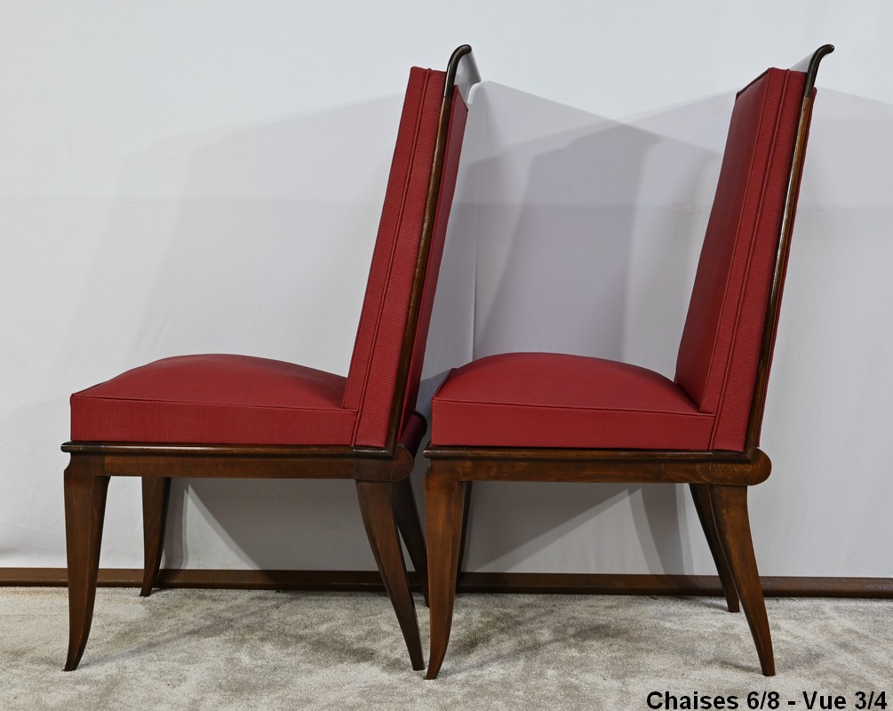 Suite de 8 Chaises en Hêtre Massif, attribuée à J.Leleu, Art Déco – 1940